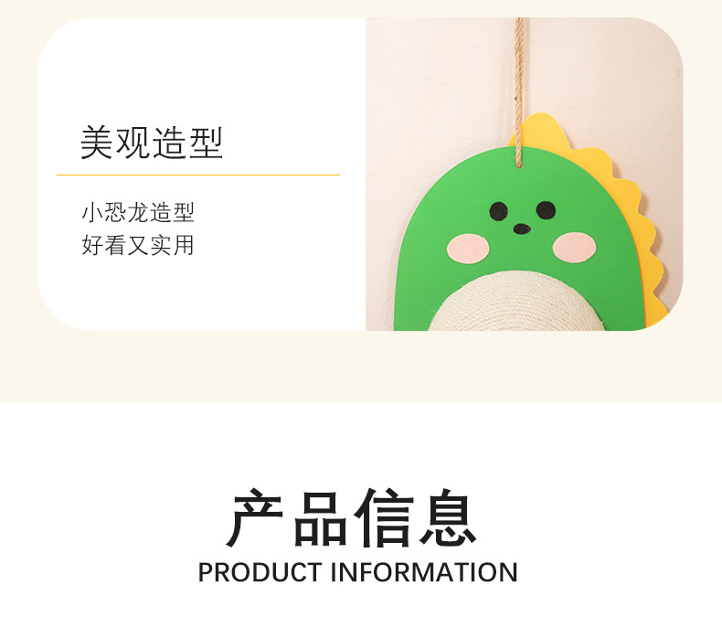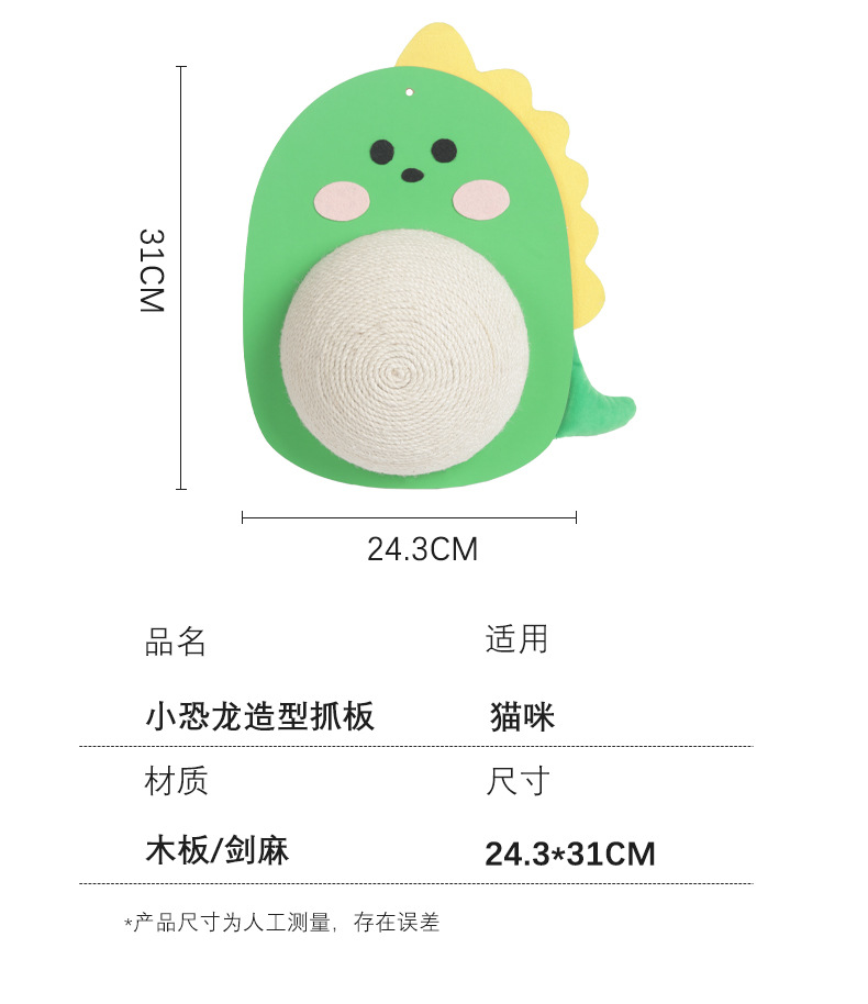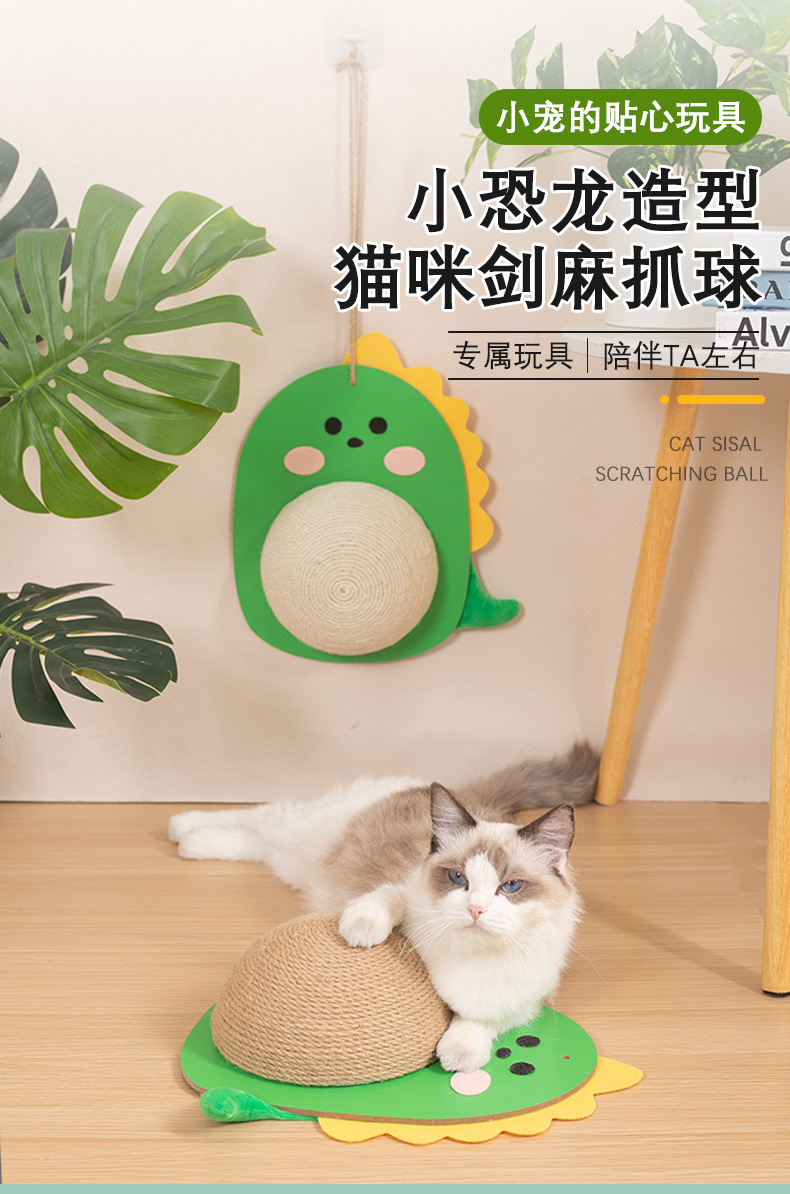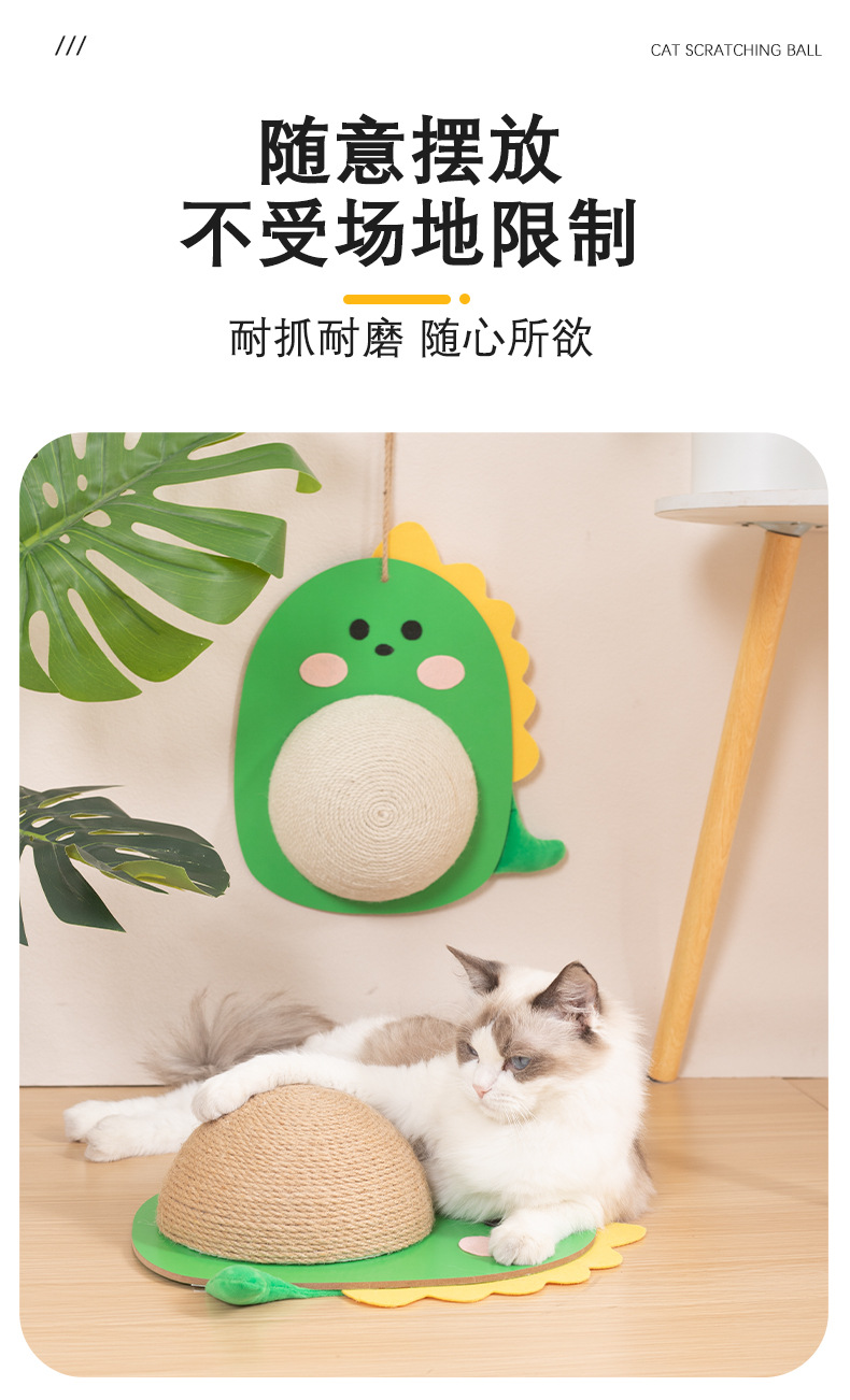 작은 공룡 매달린 고양이 긁는 보드 대마 밧줄 고양이 긁는 공 착용 방지 캐치 발톱 연삭 유물 수직 고양이 장난감스토어 가기