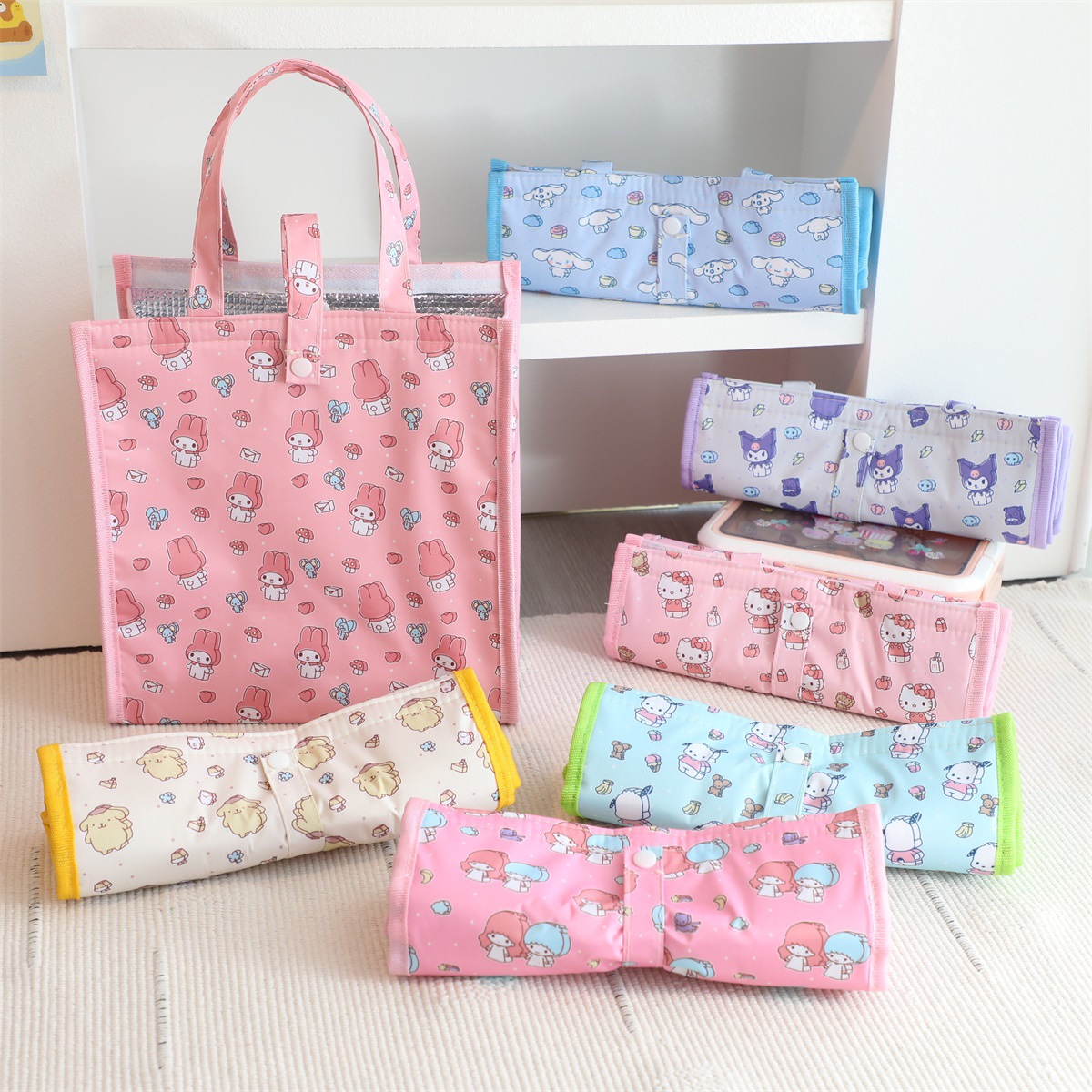 만화 옥스포드 천 접이식 휴대용 도시락 가방 학생 단열 가방 야외 캐주얼 대용량 피크닉 가방