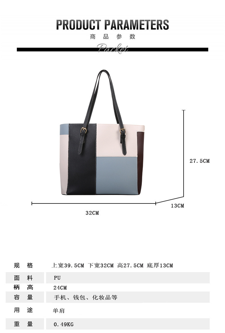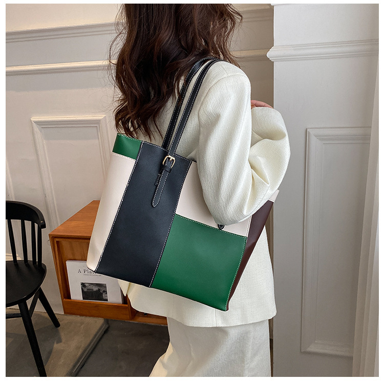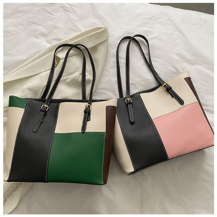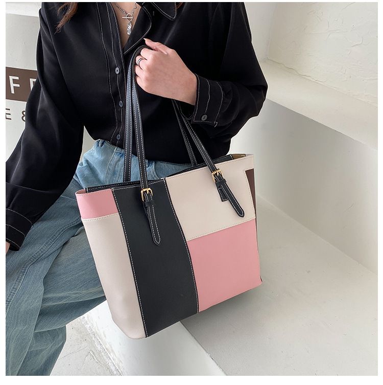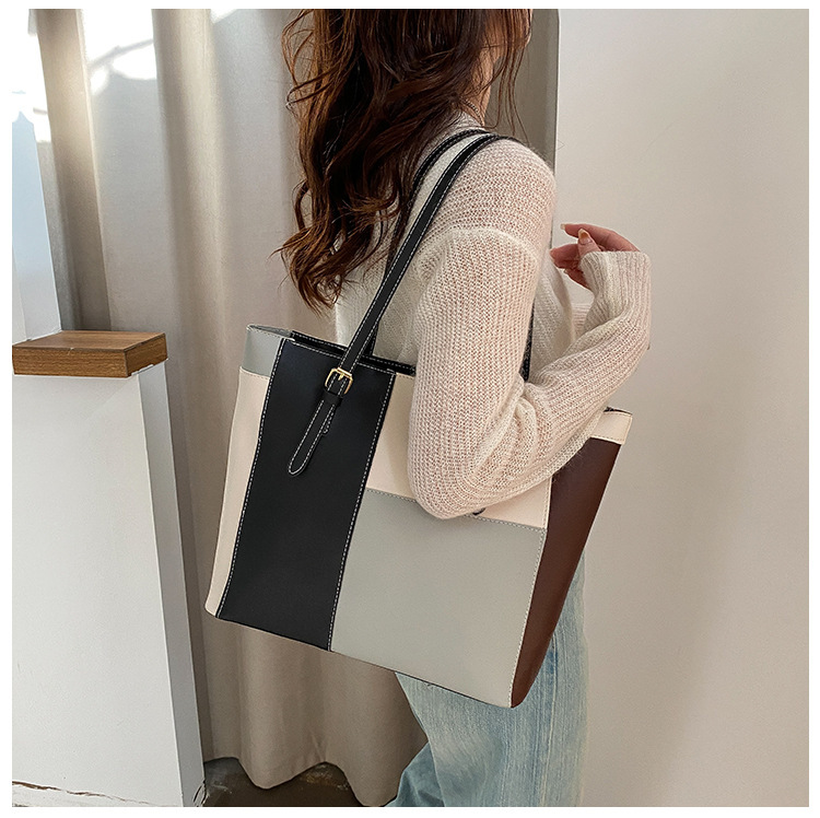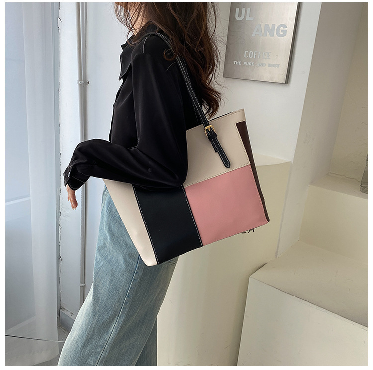새로운 한국식 대비 컬러 대용량 토트 백 여성 패션 아웃 휴대용 쇼핑백 여성 가방 서양식 숄더백