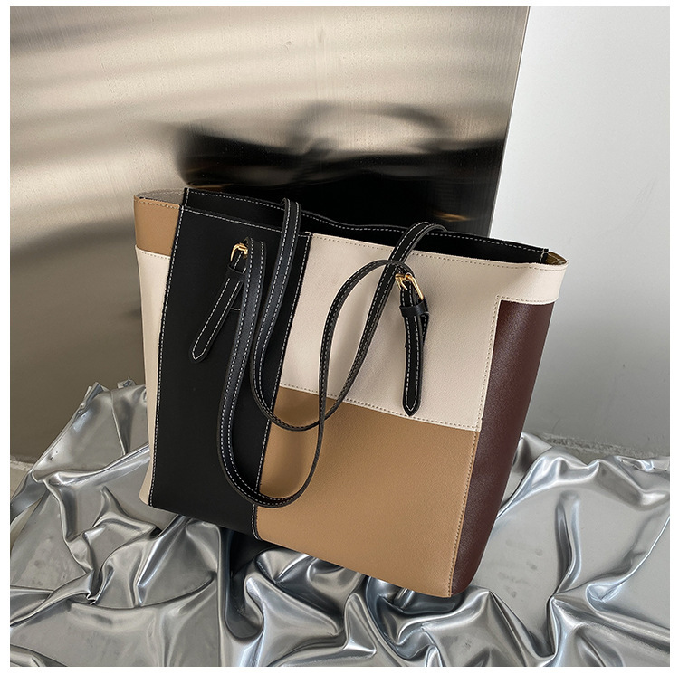 새로운 한국식 대비 컬러 대용량 토트 백 여성 패션 아웃 휴대용 쇼핑백 여성 가방 서양식 숄더백스토어 가기