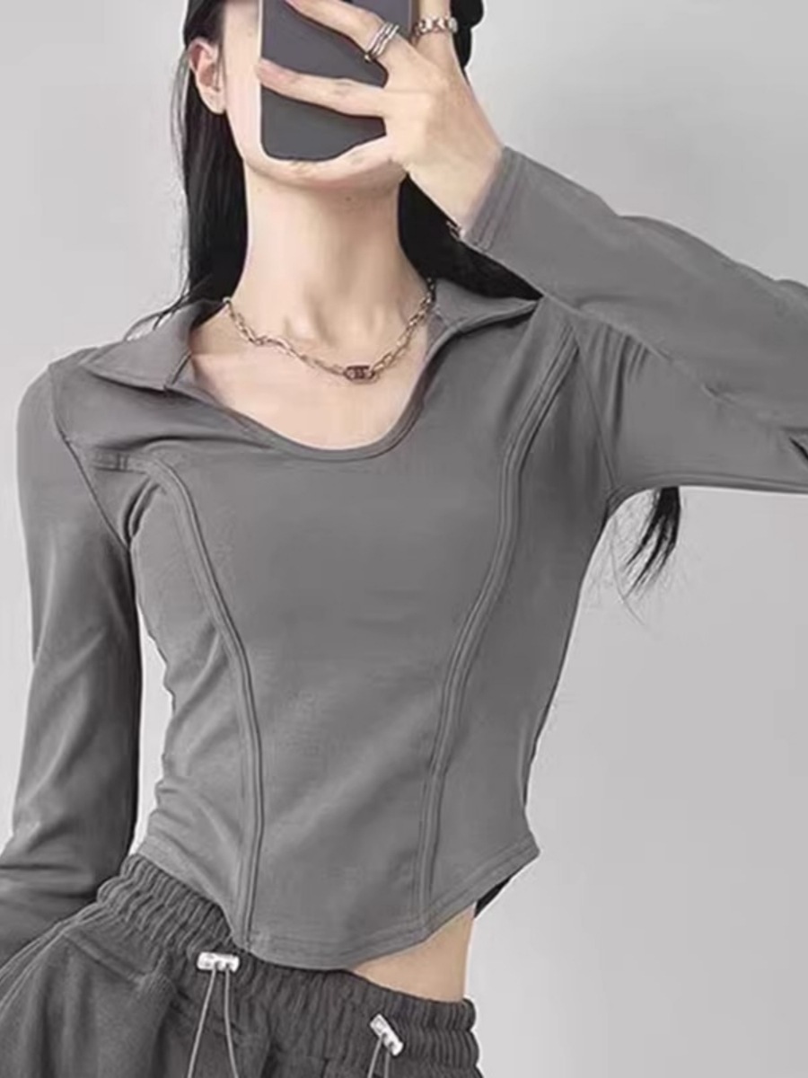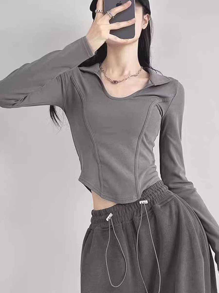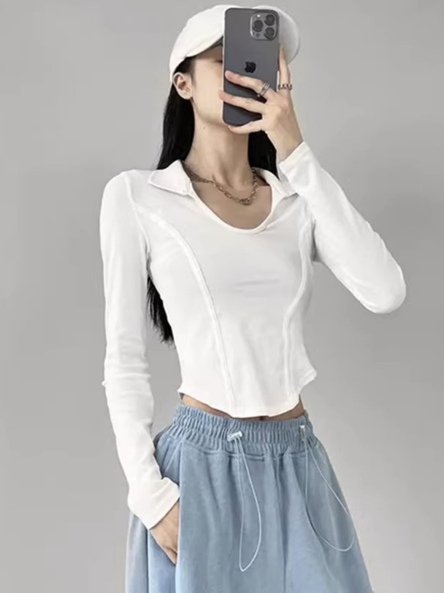 2023 새로운 가을 미국 스타일 내부 POLO 칼라 긴 소매 짧은 티셔츠 바닥 셔츠