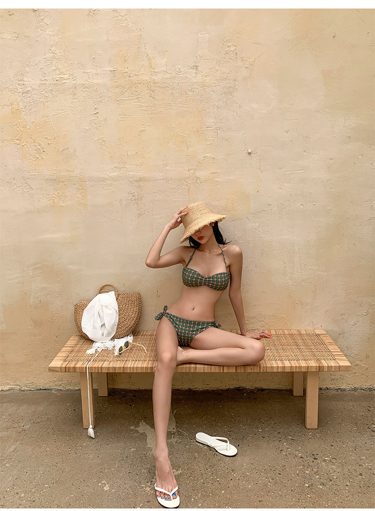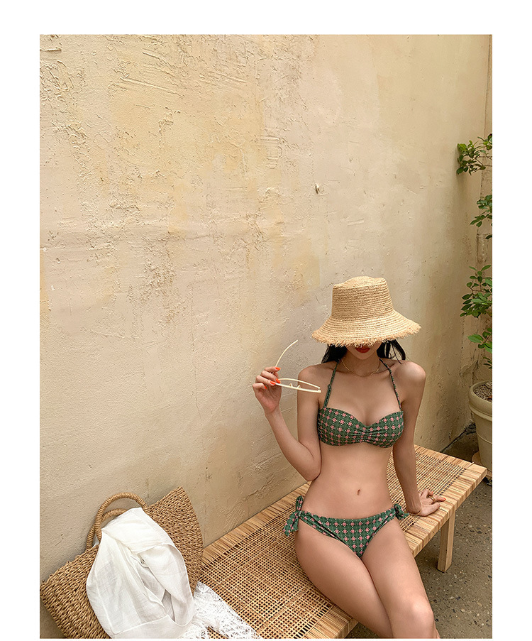 한국 스타일 분할 수영복 여성의 새로운 섹시한 슬리밍 작은 가슴 푸시업 아름다운 백레트로 인쇄 온천 비키니 수영복스토어 가기