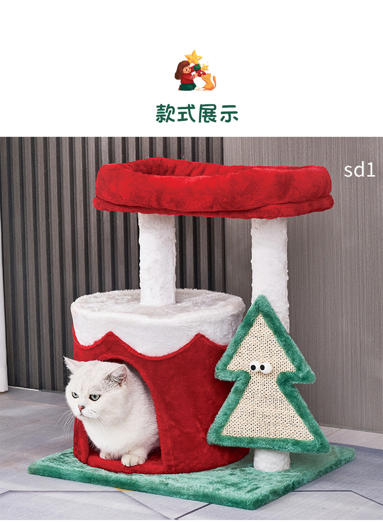 국경 간 뜨거운 판매 고양이 둥지 개집 이중 사용 크리스마스 시리즈 고양이 등반 랙 애완 동물 둥지 사이 살 고양이 긁기 포스트 점프 플랫폼스토어 가기