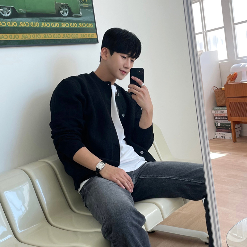 한국식 게으른 스타일 단색 둥근 목 스웨터 코트 남성 가을과 겨울 니트 카디건 다용도 언더 셔츠 탑스토어 가기