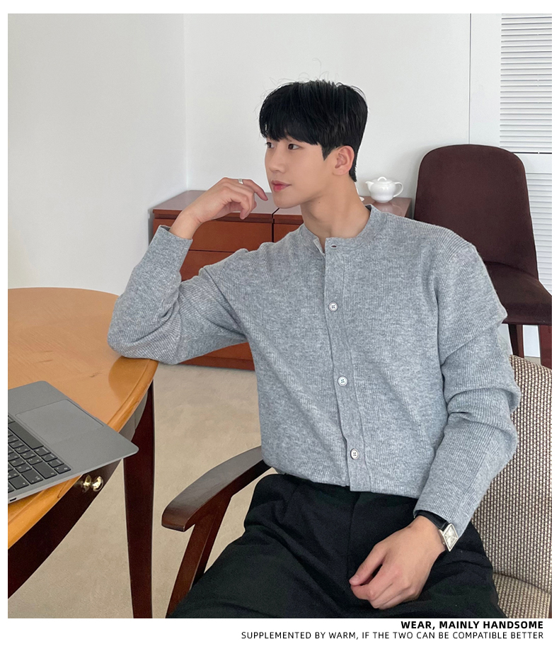 한국식 게으른 스타일 단색 둥근 목 스웨터 코트 남성 가을과 겨울 니트 카디건 다용도 언더 셔츠 탑