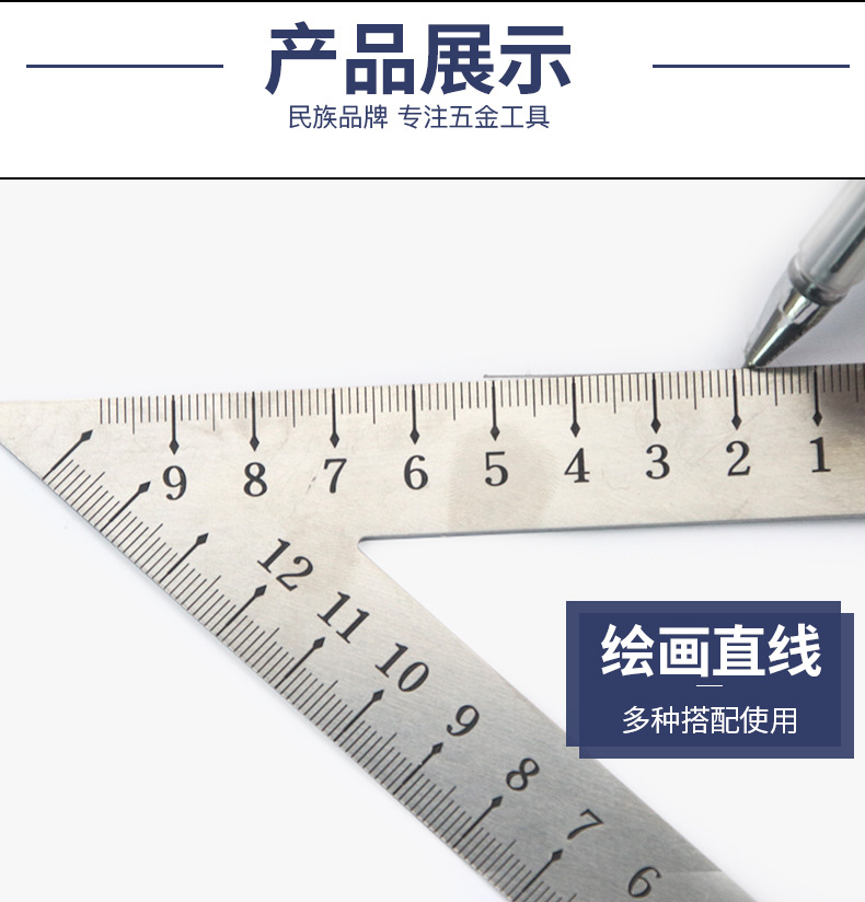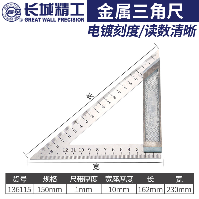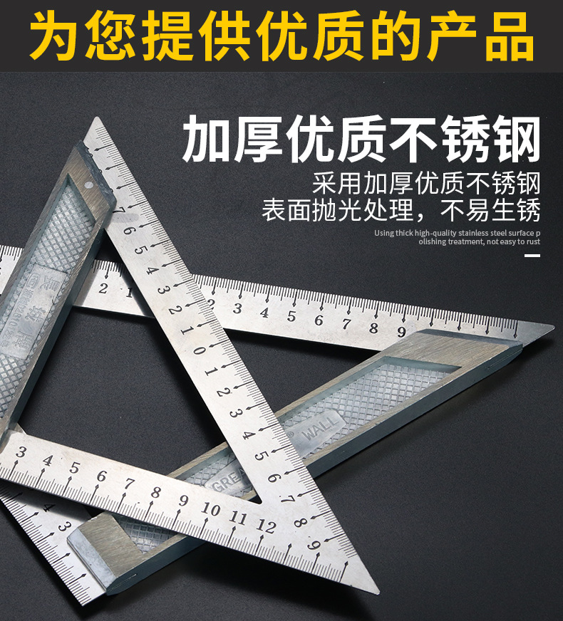 만리장성 삼각형 통치자 스테인리스 대형 목공 각도 통치자 고정밀 산업 등급 90 도 두꺼운 각도 통치자 150mm