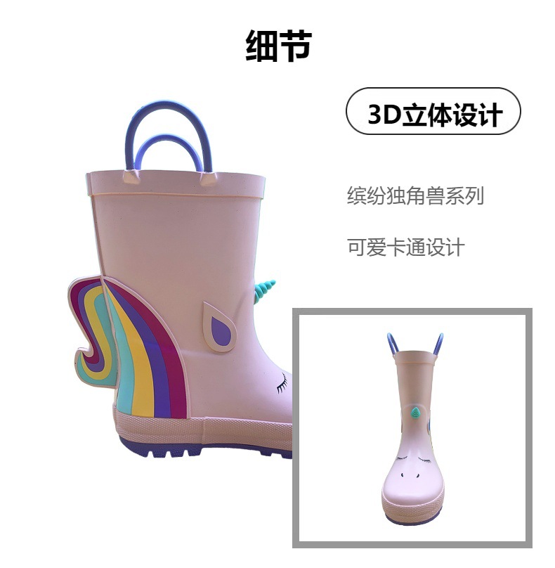 새로운 3D 유니콘 따뜻한 어린이 장화 아기 방수 미끄럼 방지 두꺼운 장화 귀여운 물 신발 맞춤 장화스토어 가기