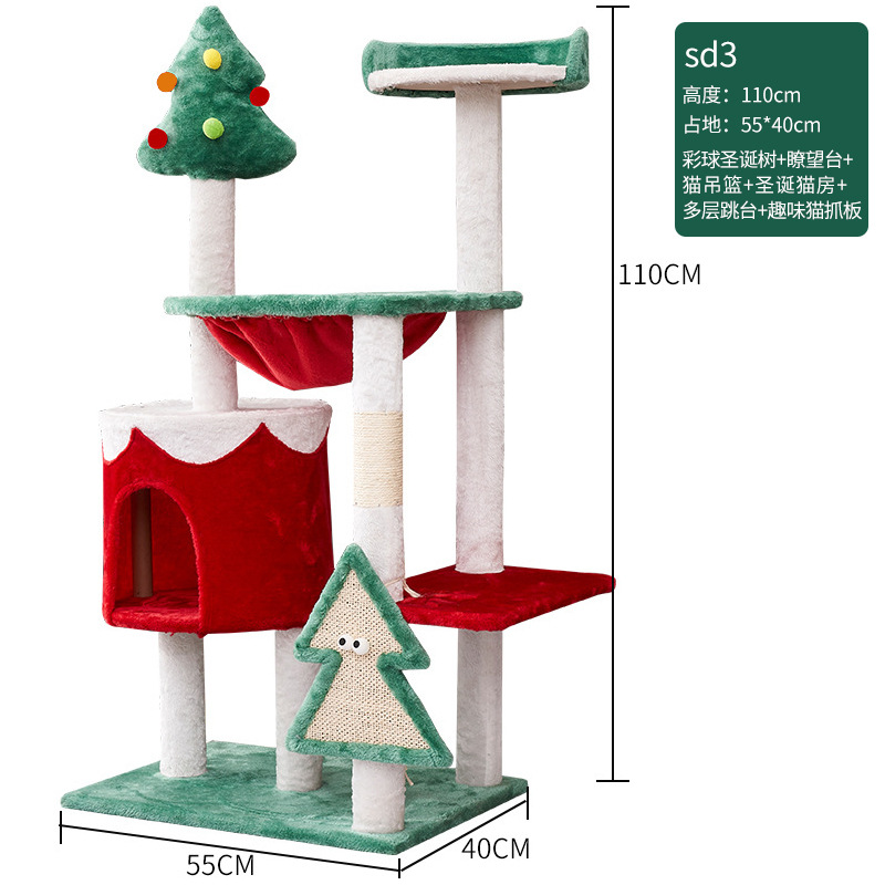크리스마스 시리즈 고양이 등반 프레임 안정적인 스크래치 방지 나무 고양이 장난감 고양이 둥지 고양이 나무 통합 고양이 용품 도매