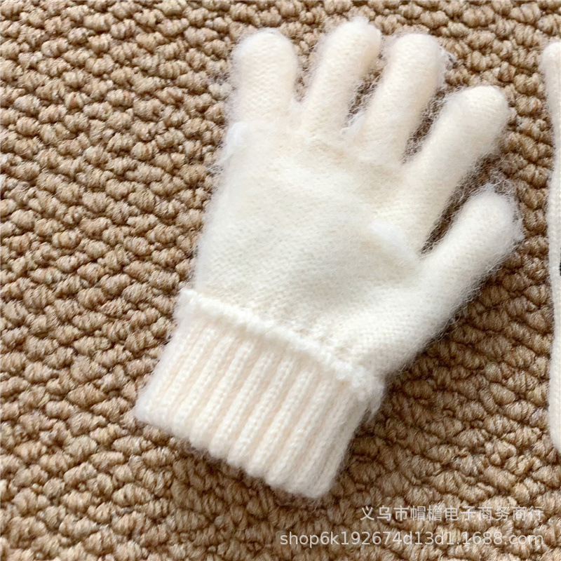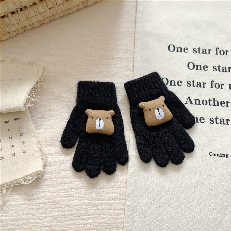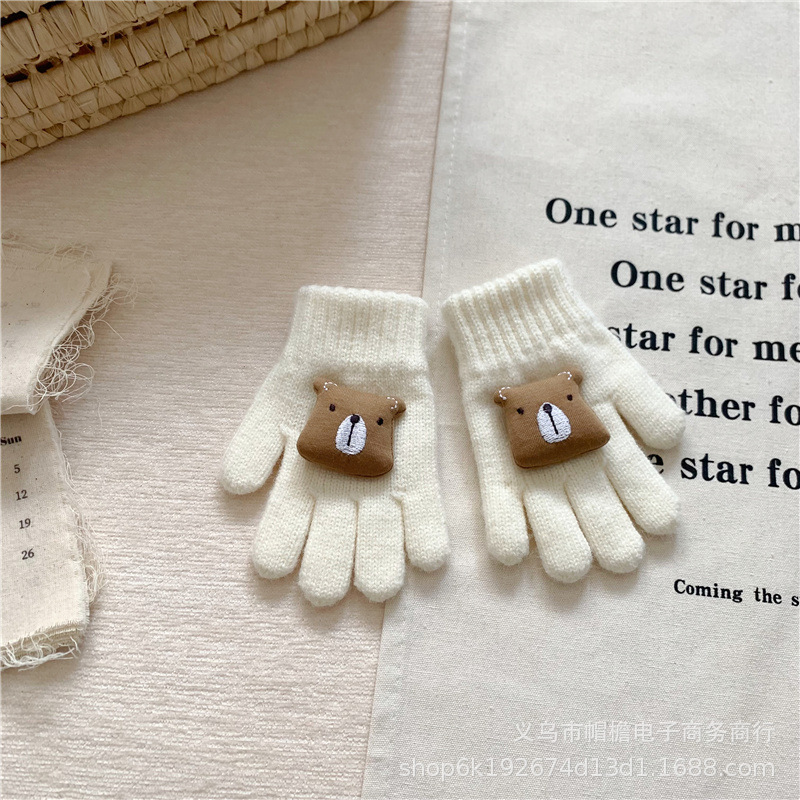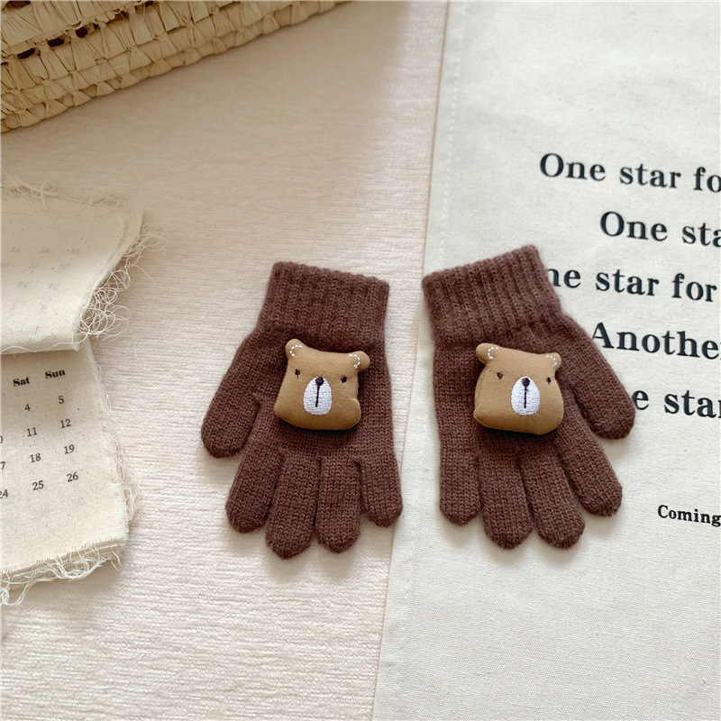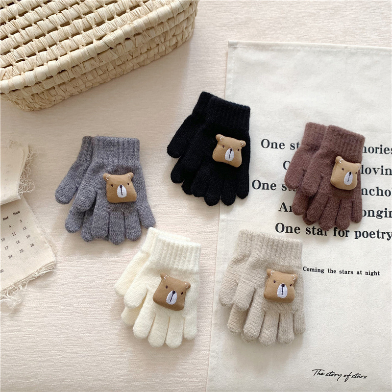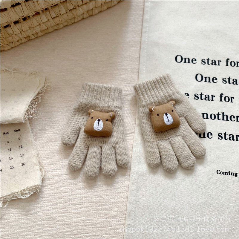 만화 어린이 손가락 니트 장갑 겨울 따뜻한 소년과 소녀 귀여운 입체 곰 5 손가락 양모 장갑