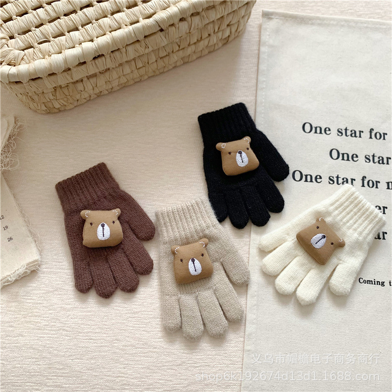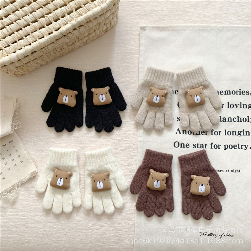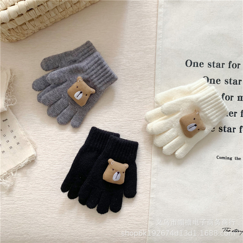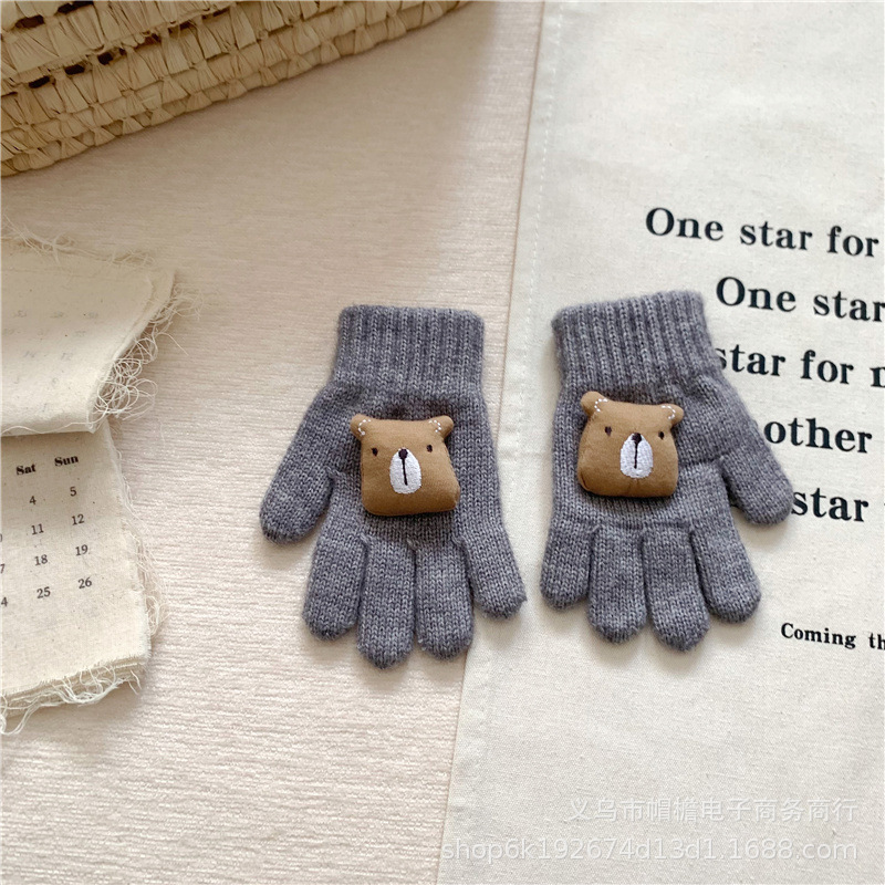 만화 어린이 손가락 니트 장갑 겨울 따뜻한 소년과 소녀 귀여운 입체 곰 5 손가락 양모 장갑스토어 가기