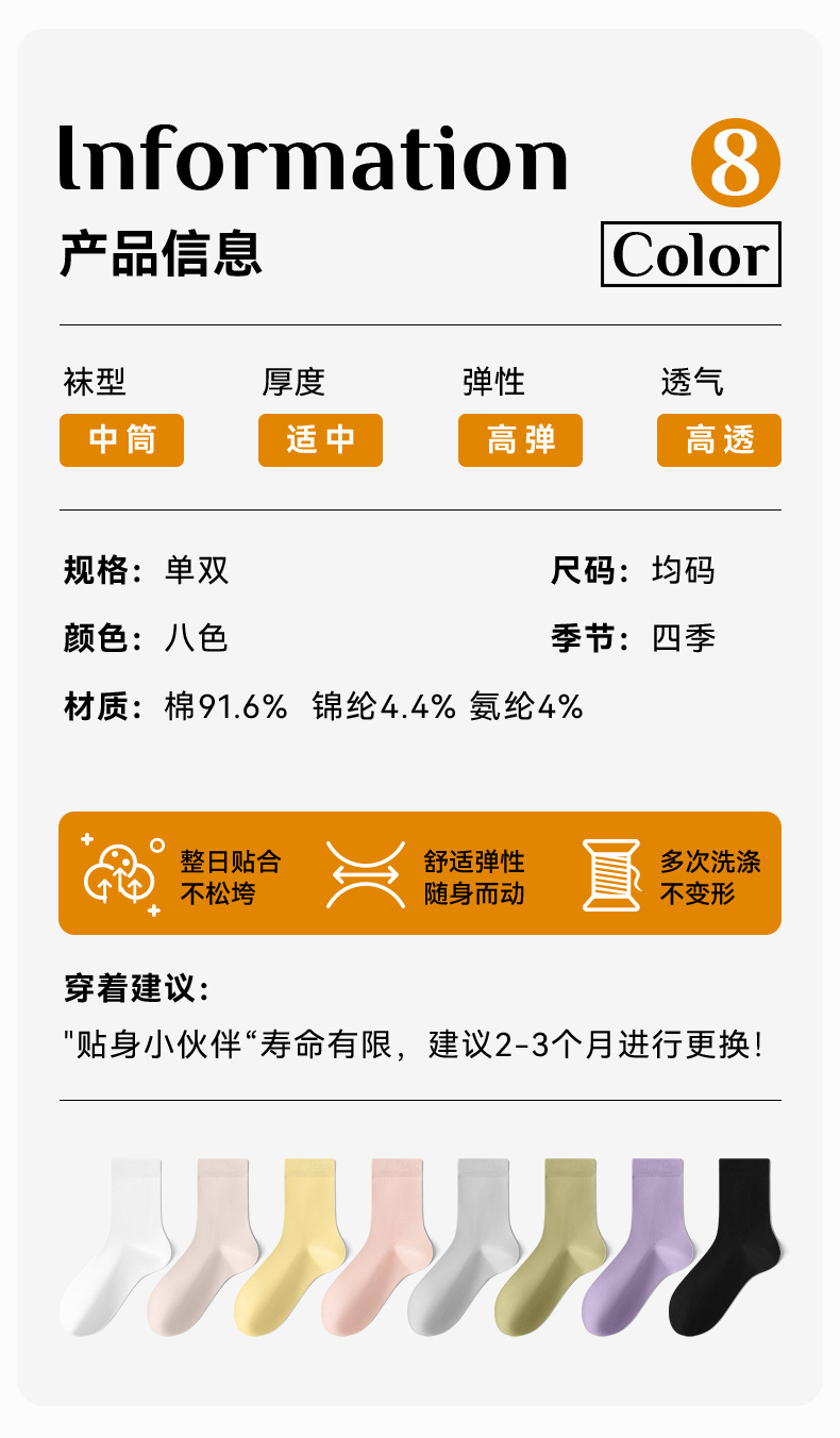 여성용 가을 겨울 중목 양말 스포츠 항균 미끄럼 방지 단색 러플 코튼 양말 도매 주지 양말업계 캐주얼 스타일