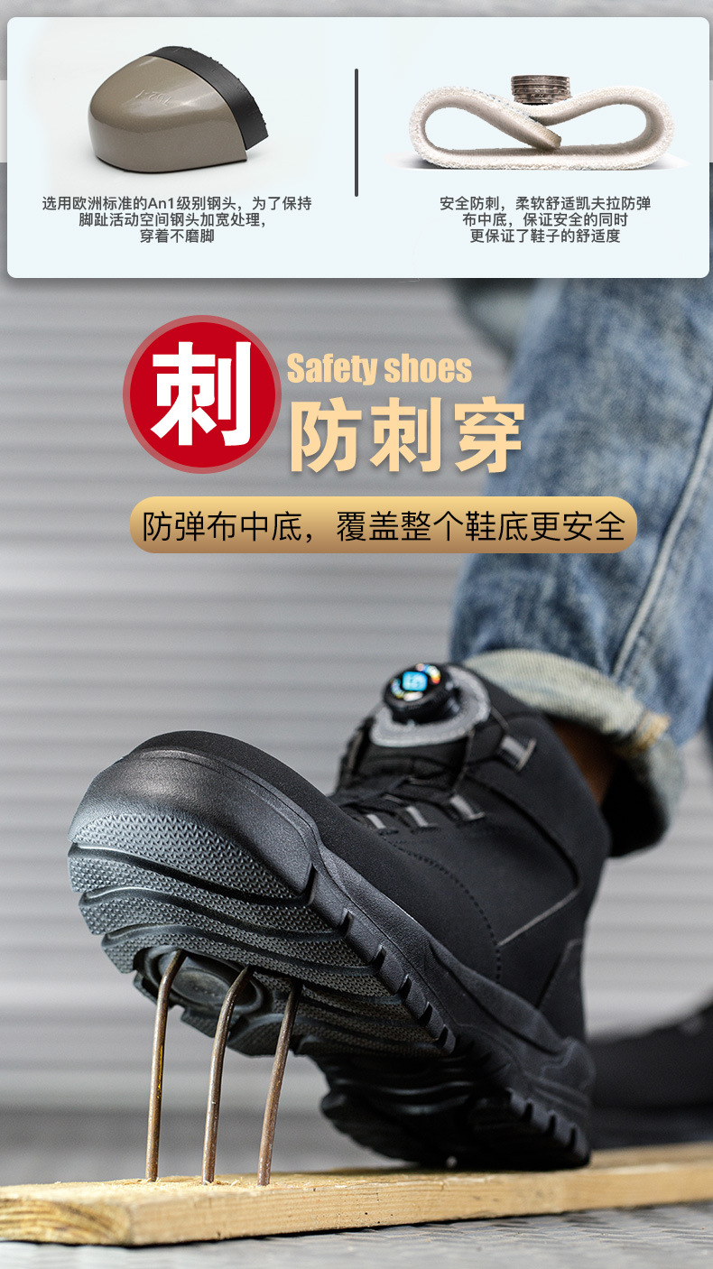 국경 노동 보호 신발 새로운 패션 게으른 회전 버튼 남자 작업 신발 안티 스매쉬 안티 펑크 경량 안전 신발스토어 가기