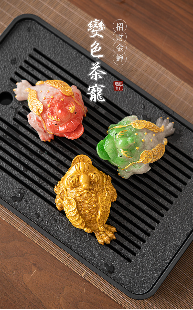 색상 변경 차 애완 동물 장식 부티크 영양 차 테이블 차 테이블 차 트레이 용품 차 놀이 행운의 황금 두꺼비 차 세트 액세서리스토어 가기