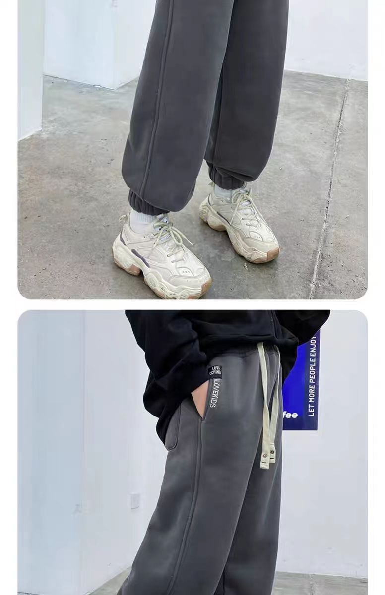 남학생과 여학생 기모 바지 가을과 겨울 두꺼운 원피스 양털 스포츠 어린이 캐주얼 바지 여자 베르베르 양털 스웨트 팬츠스토어 가기