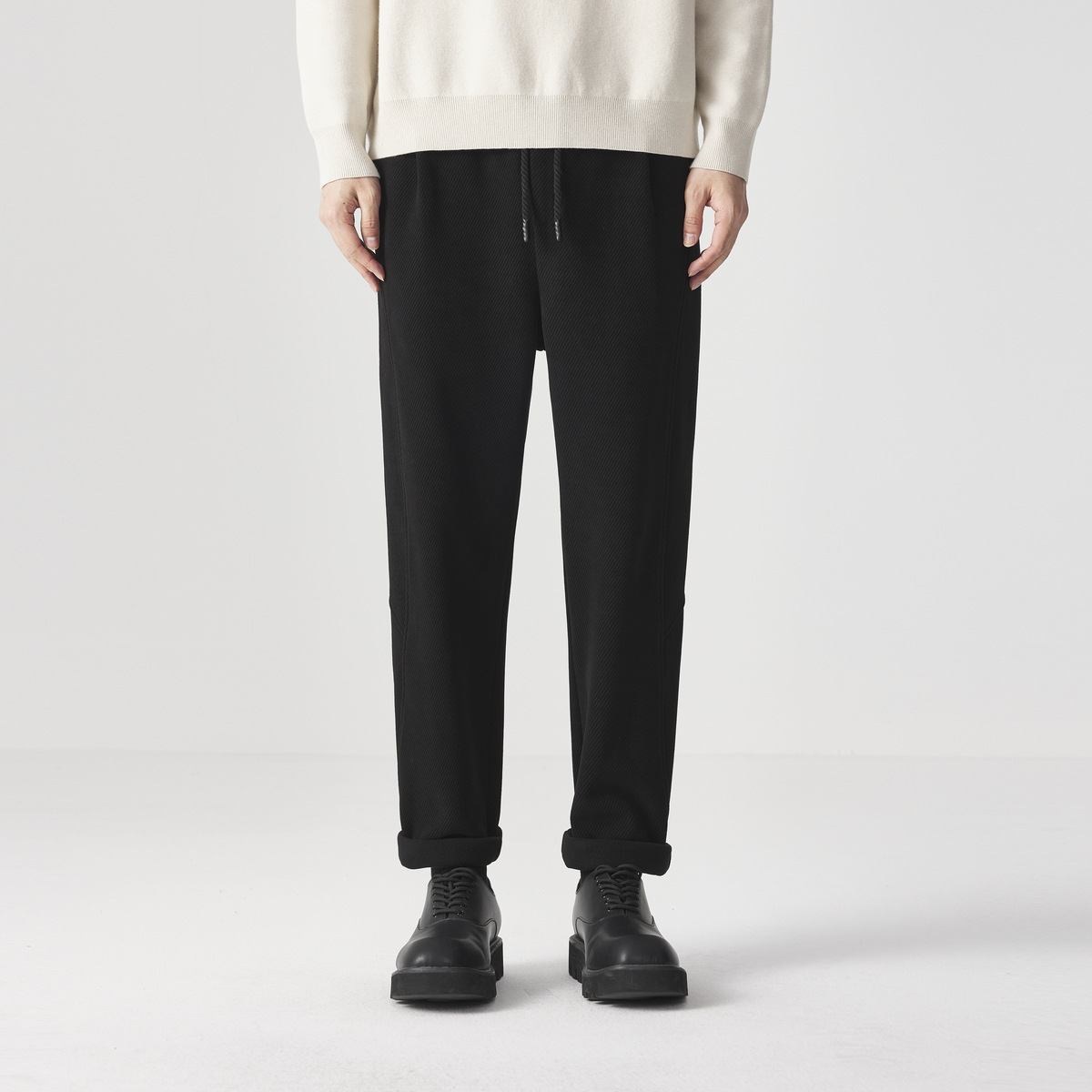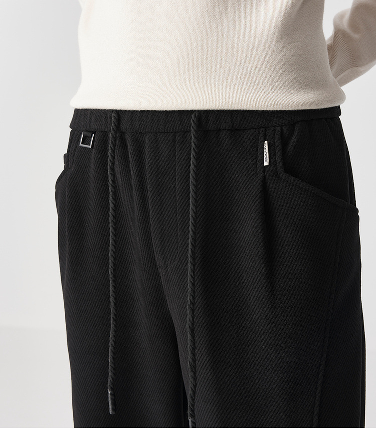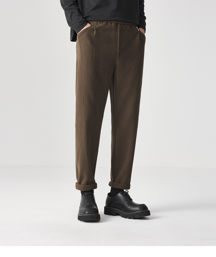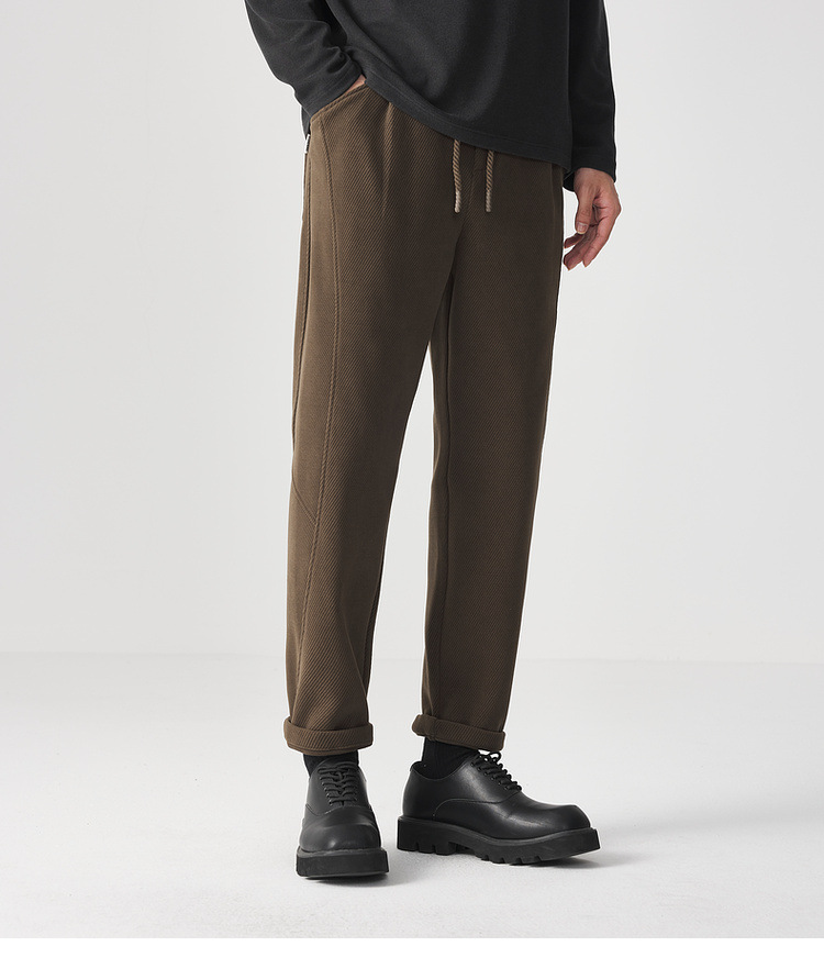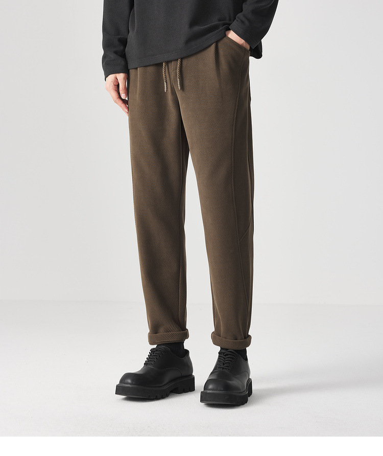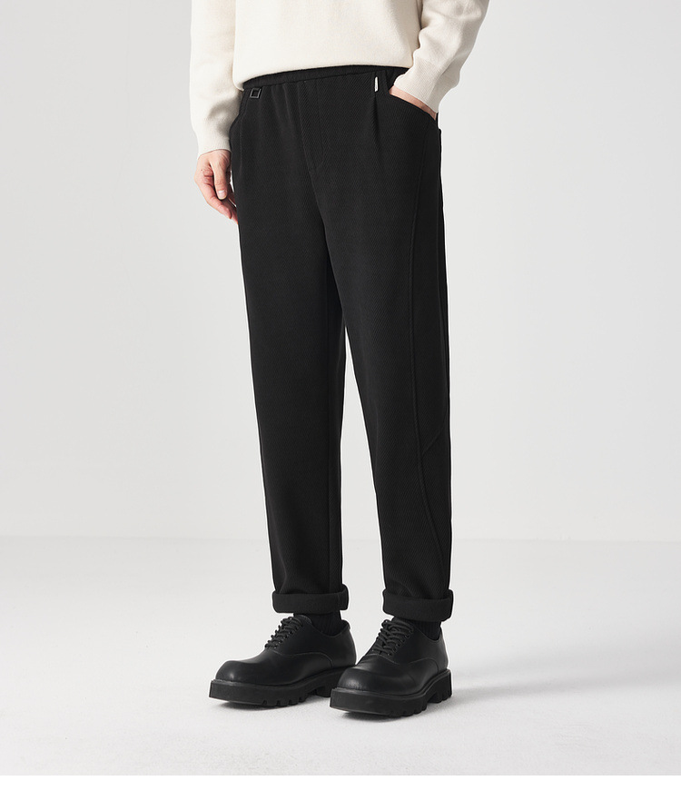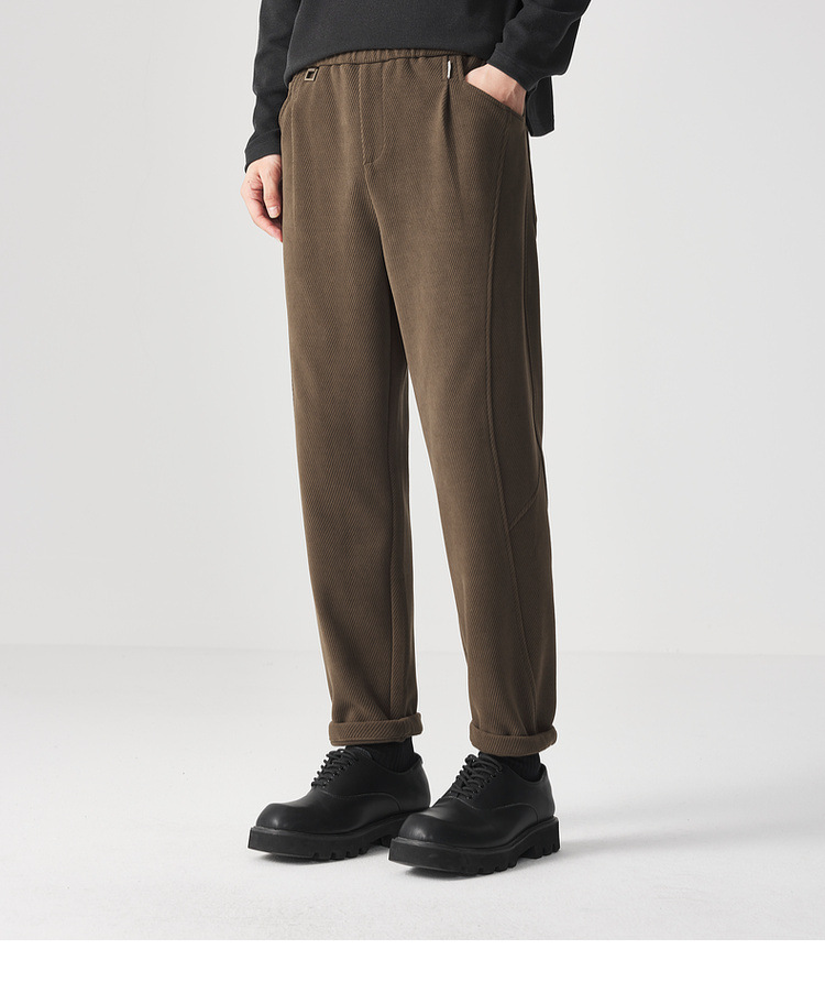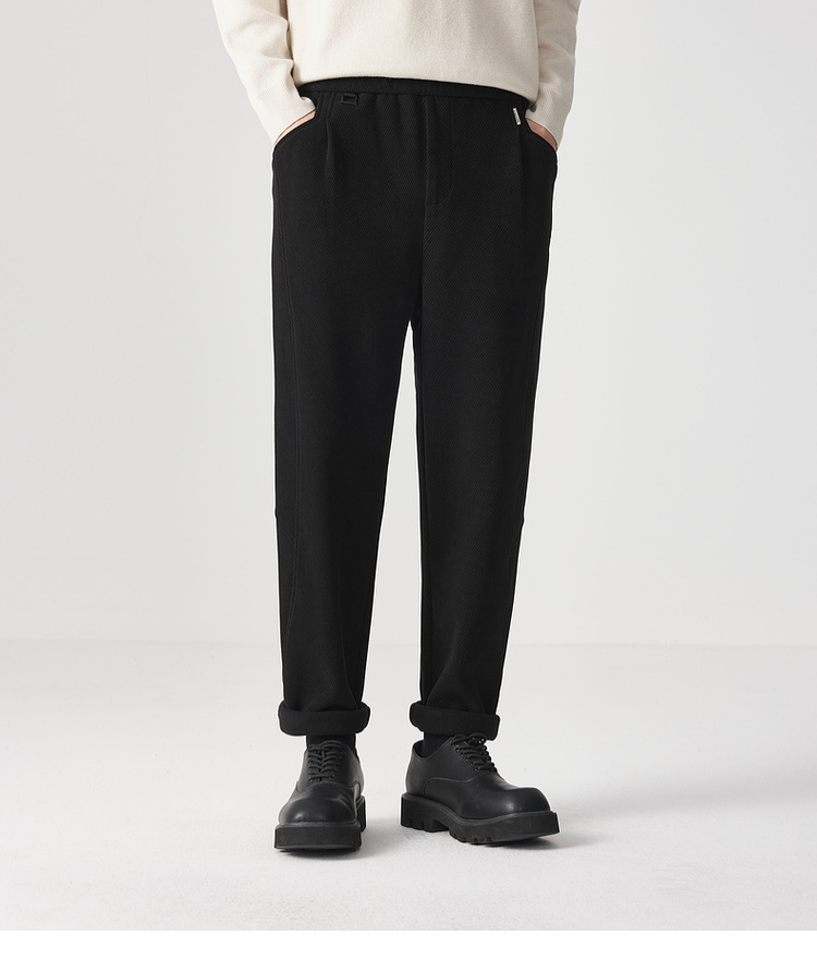 모마이크 슬로프드 텍스처 플리스 안감 캐주얼 팬츠 남성용 2025 겨울 신상품 신축성 있는 허리밴드 남성용 긴바지 90783