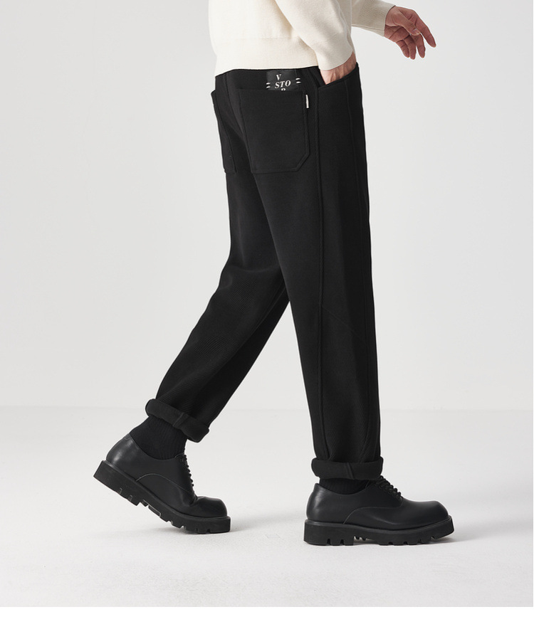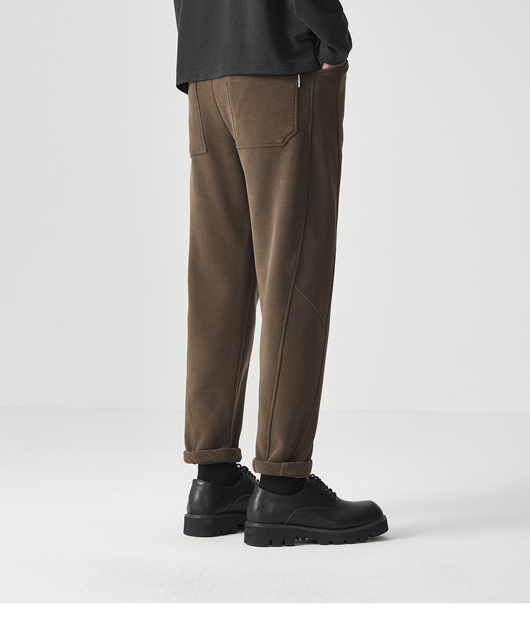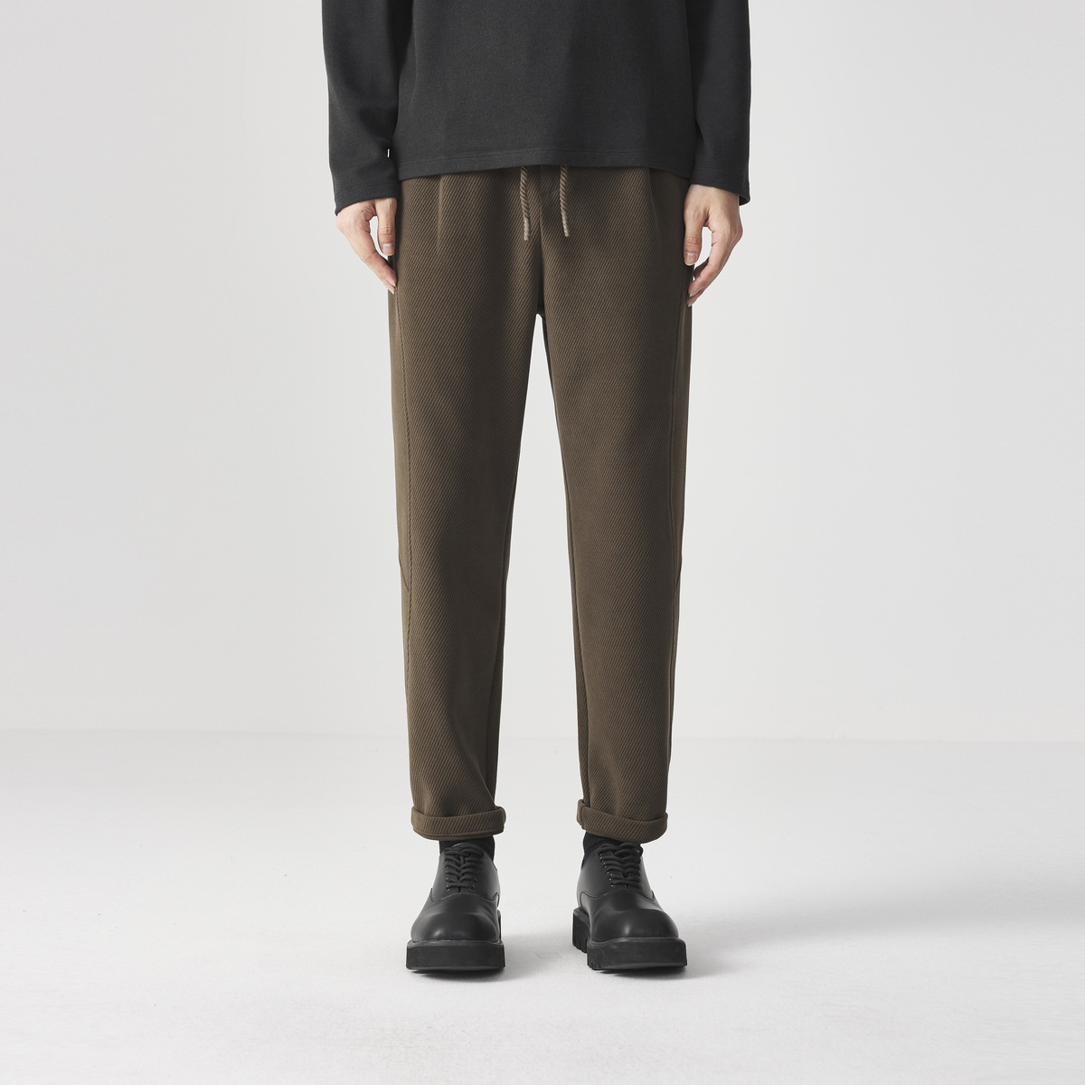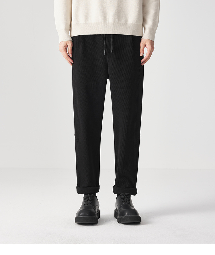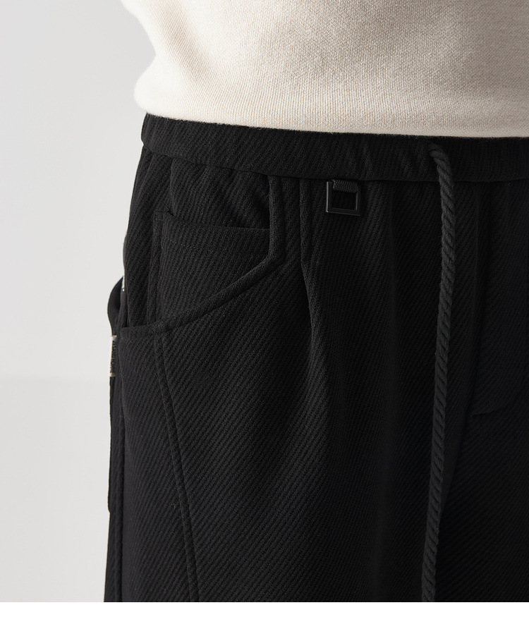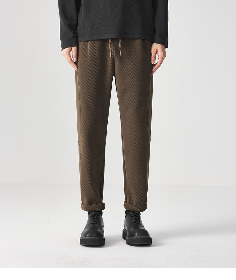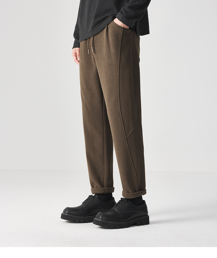 모마이크 슬로프드 텍스처 플리스 안감 캐주얼 팬츠 남성용 2025 겨울 신상품 신축성 있는 허리밴드 남성용 긴바지 90783