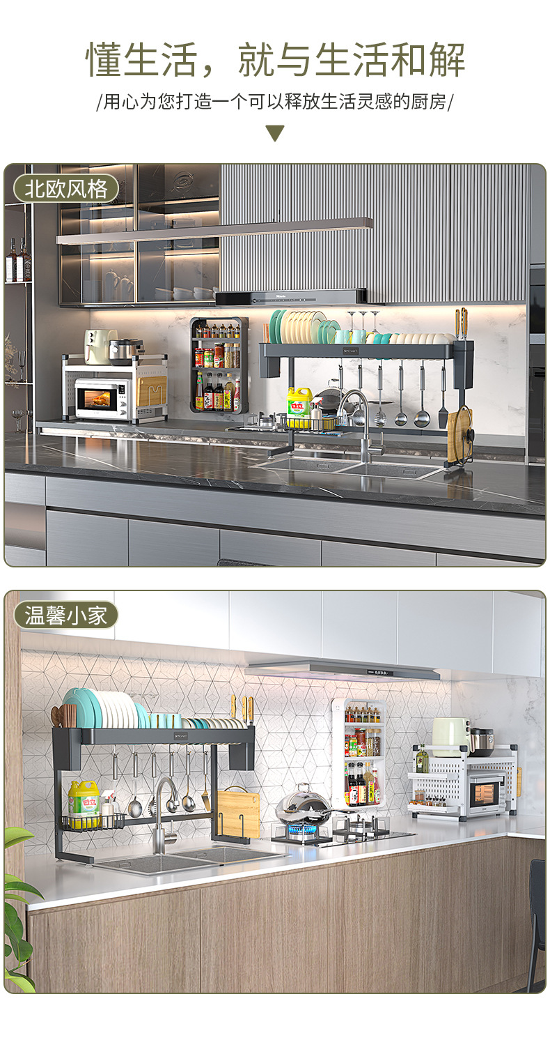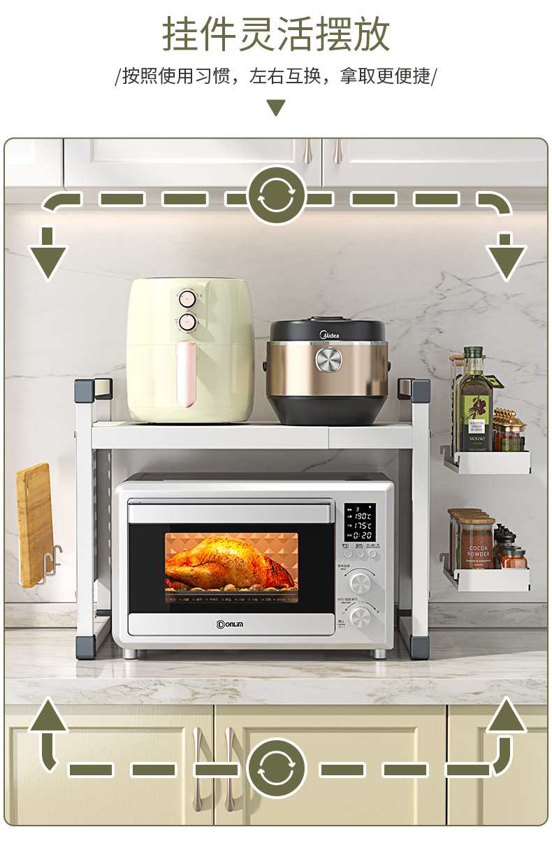 주방 수납 선반, 전자레인지 선반, 조리대용 접이식 탄소강 오븐 전용 수납 선반, 주방용품 및 도마 보관 가능