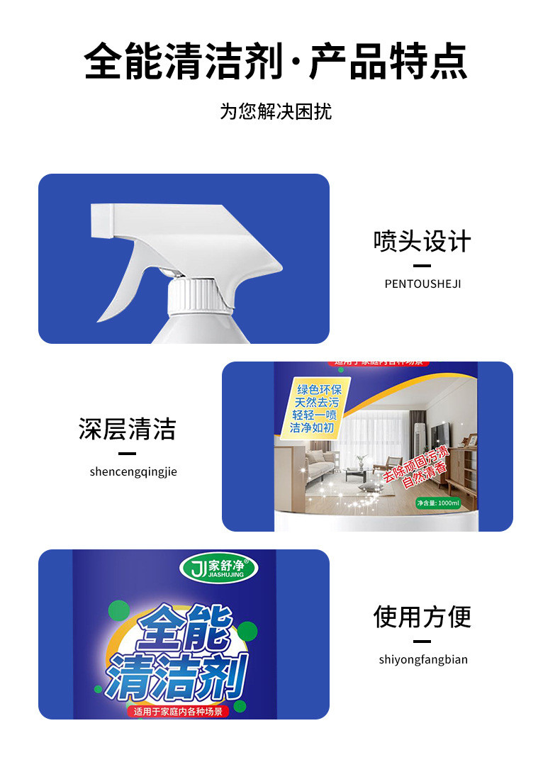 아티팩트 다기능 Jia Shujing 다목적 클리너 1000mL 주방 및 욕실의 기름 얼룩과 심한 기름 얼룩을 쉽게 해결합니다.스토어 가기