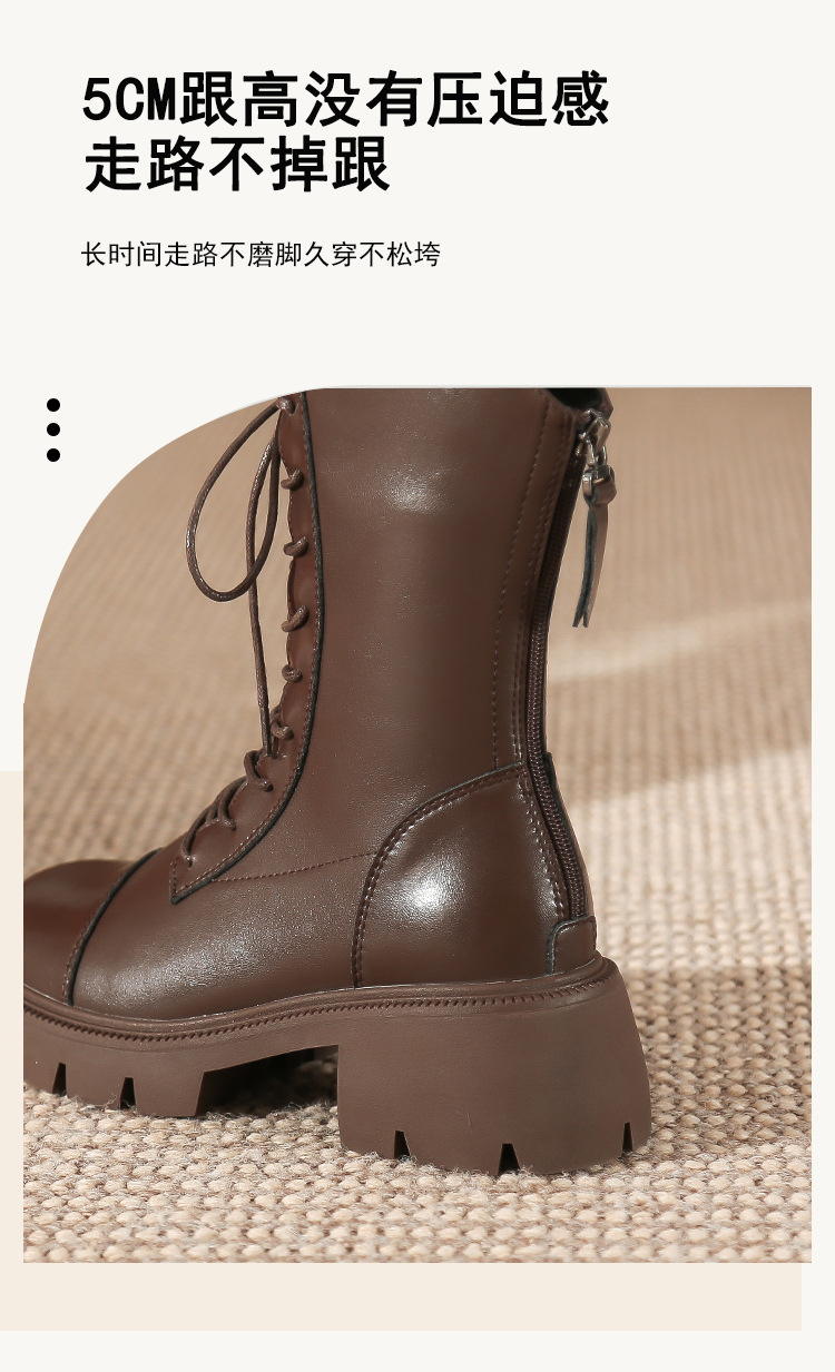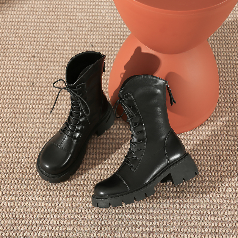 소가죽 마틴 부츠 여성용 영국 스타일 2024 가을 겨울 신상품 인기 V형 끈 부츠 인스 두꺼운 밑창 검정 숏부츠스토어 가기