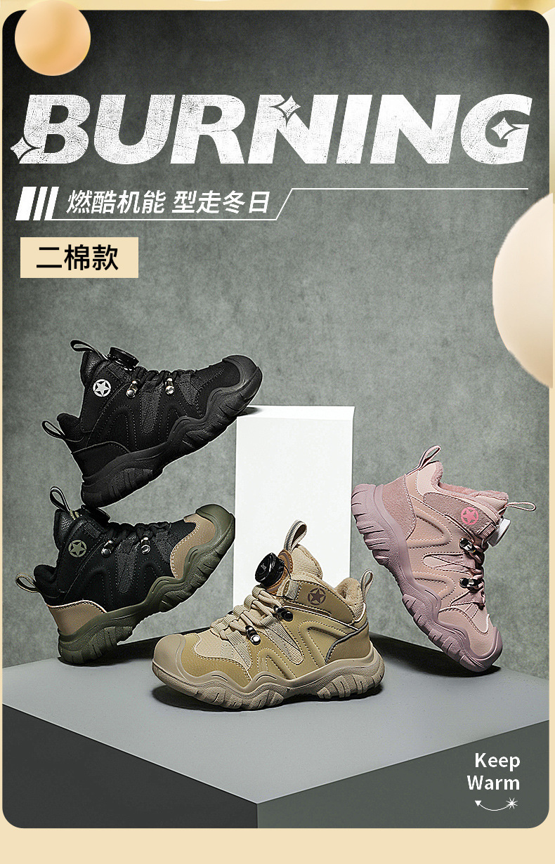 지프 어린이용 겨울 면화 신발 2024년 신형 두꺼운 겨울 신발 남아용 따뜻한 운동화