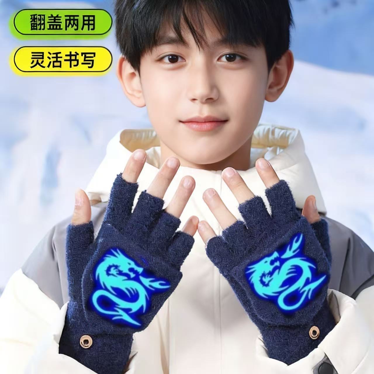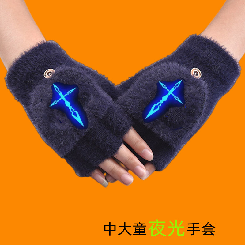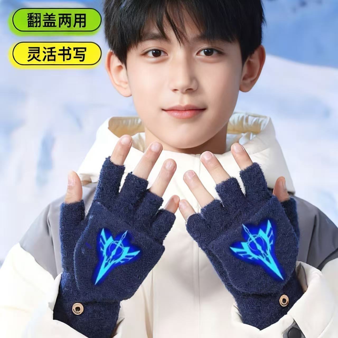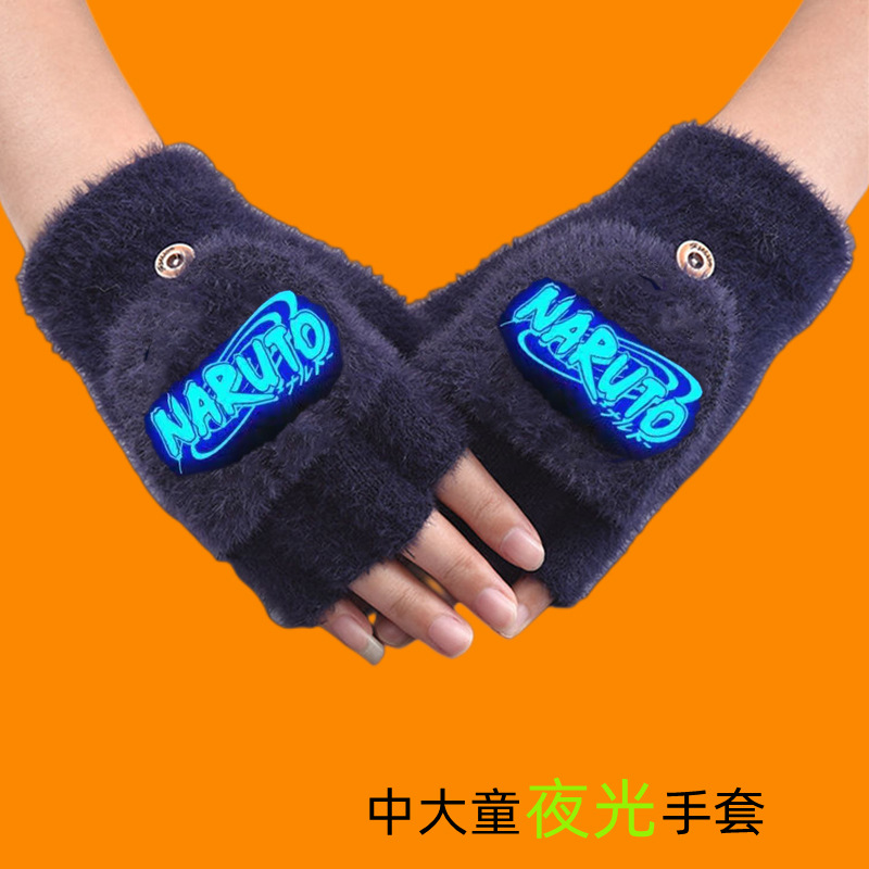 초등학생 장갑 어린이 장갑 6세부터 18세 반손가락 장갑 멋지고 쿨한 나루토 플립업 장갑 벨벳