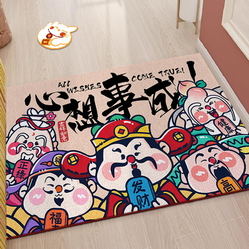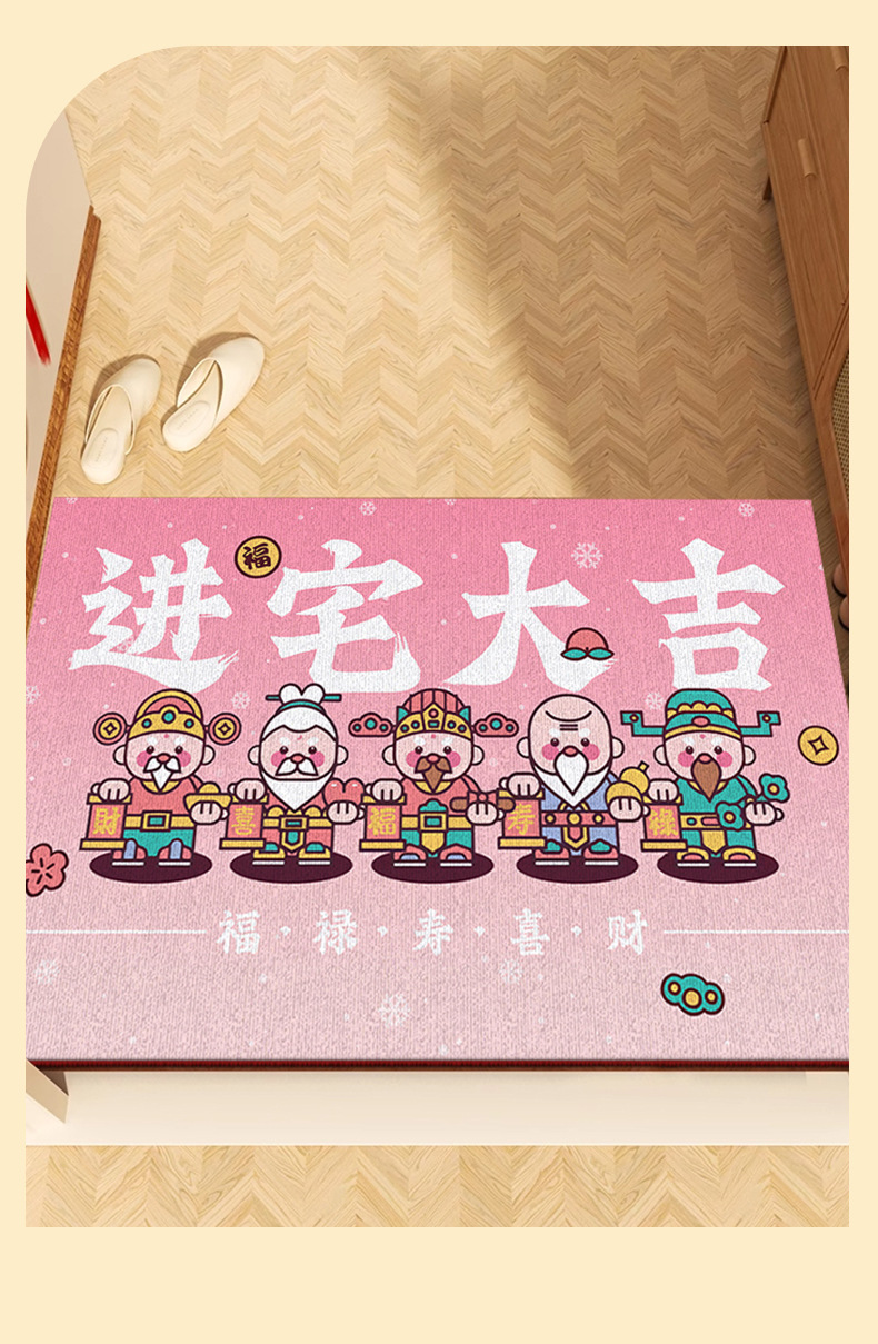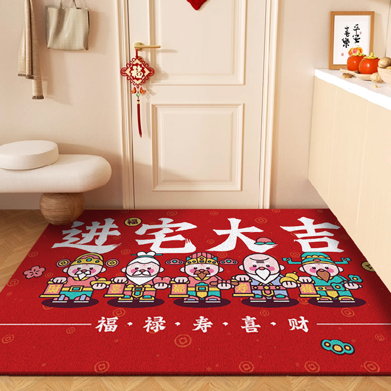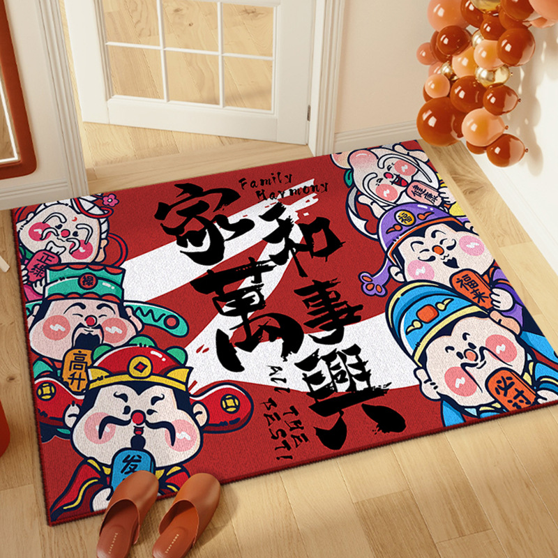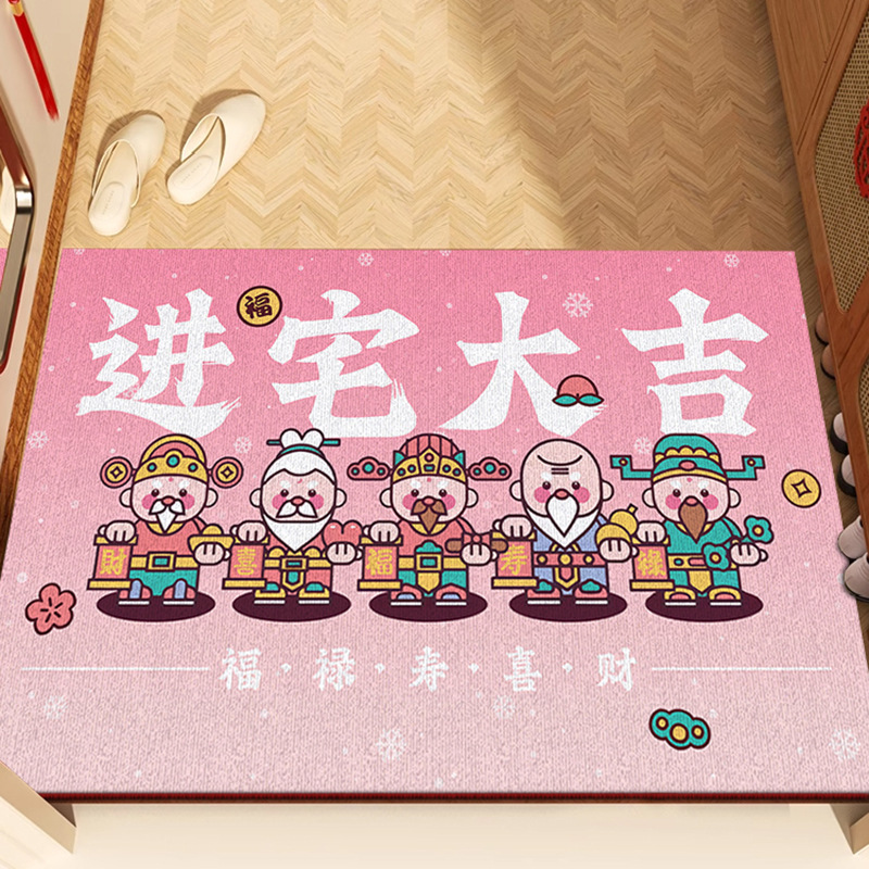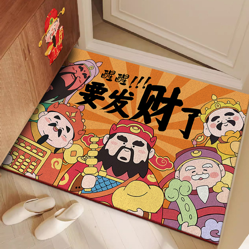 국가 패션 스타일 새해 부의 신 입구 문 매트 입구 미끄럼 쉬운 관리 크리스탈 벨벳 바닥 매트 원피스 배달스토어 가기