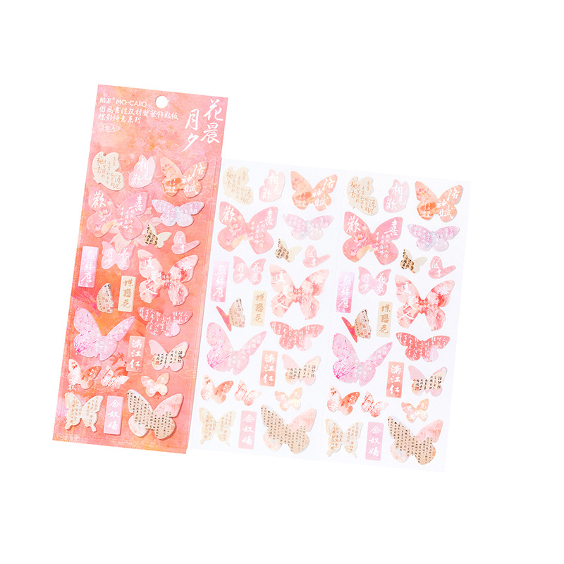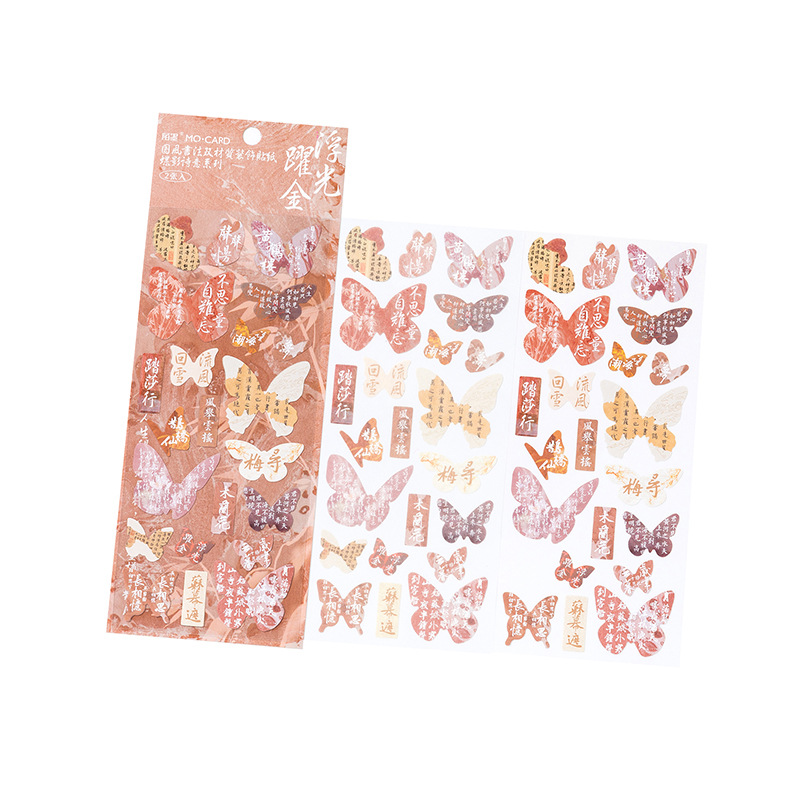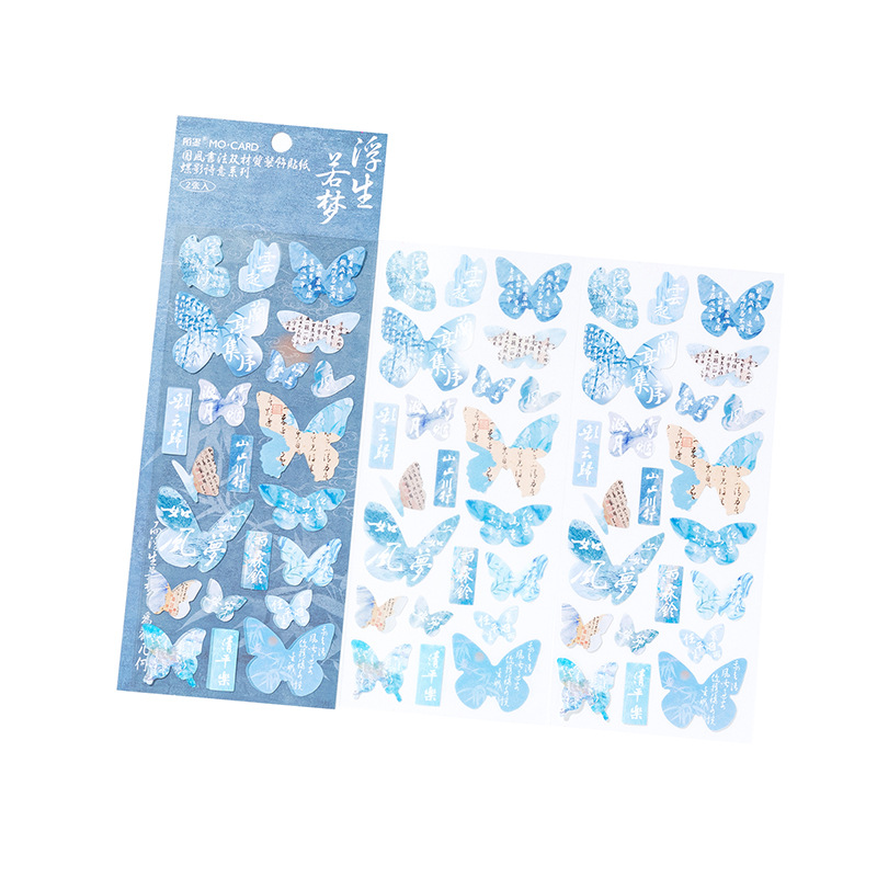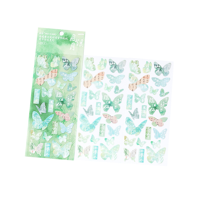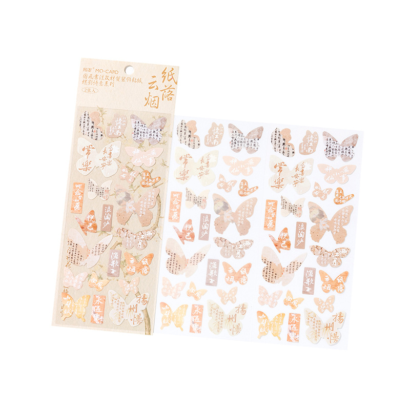 모모 중국 스타일 서예 이중 소재 스티커 나비 그림자 시적 시리즈 저널 DIY 장식 콜라주 기본 6