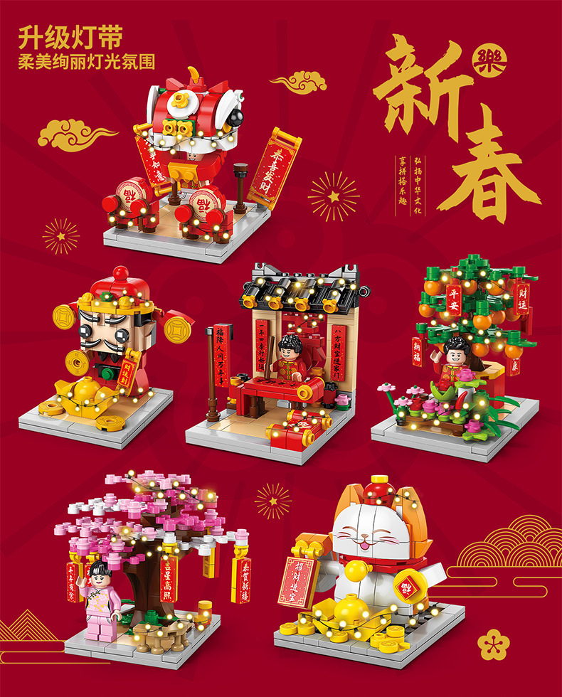 레고 8937 새해 시리즈 사자 춤 행운의 고양이 빌딩 블록 퍼즐 조립 작은 입자 장난감 장식품 도매와 호환스토어 가기