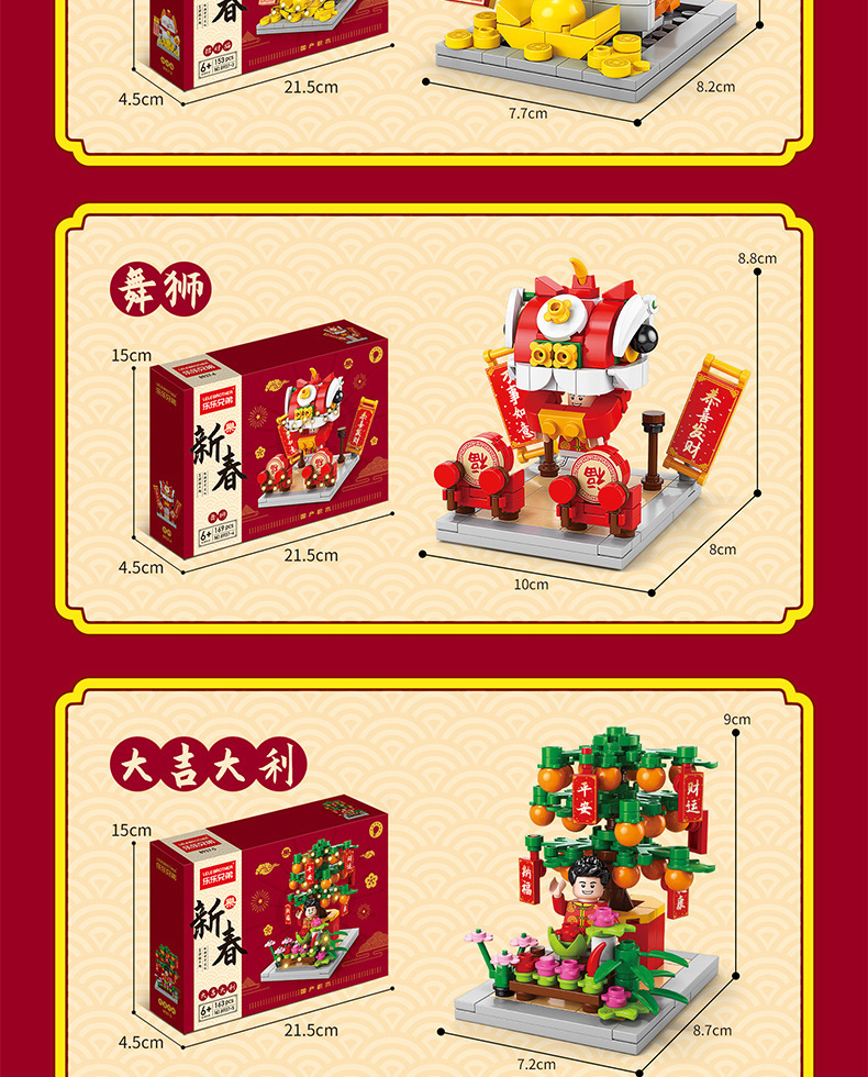 레고 8937 새해 시리즈 사자 춤 행운의 고양이 빌딩 블록 퍼즐 조립 작은 입자 장난감 장식품 도매와 호환