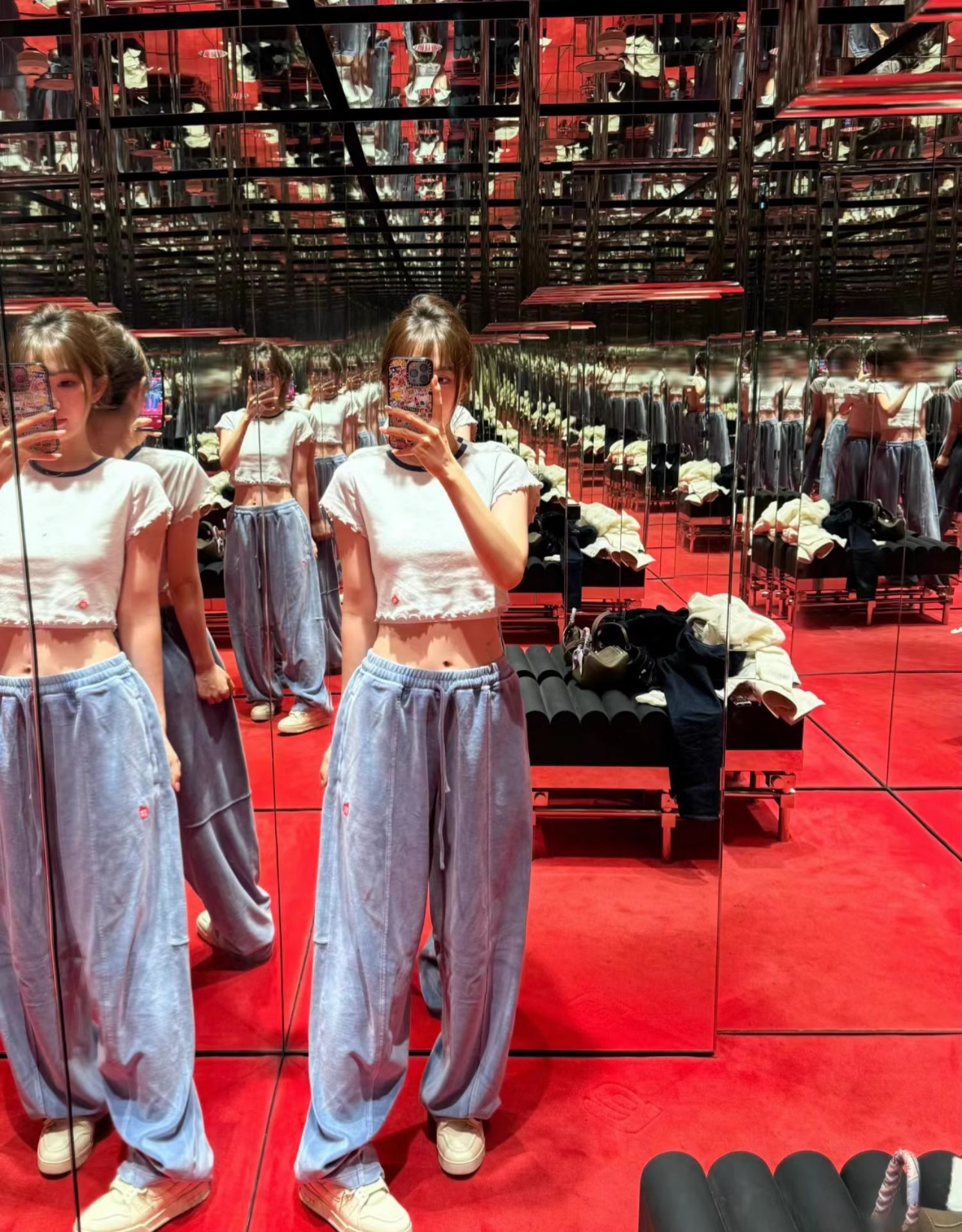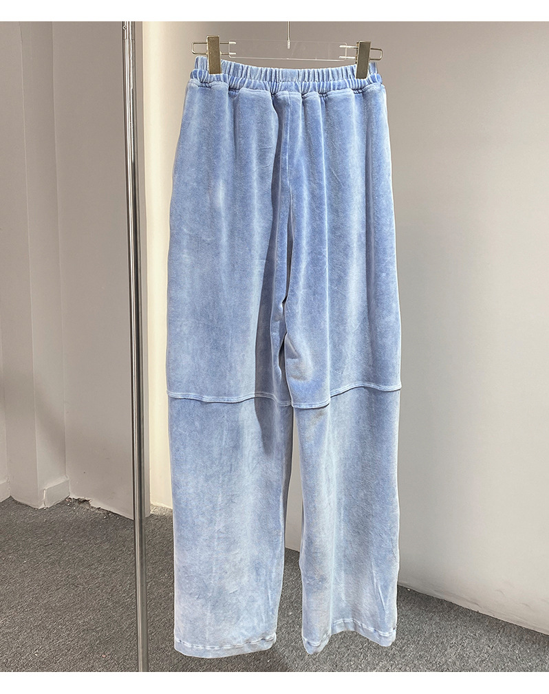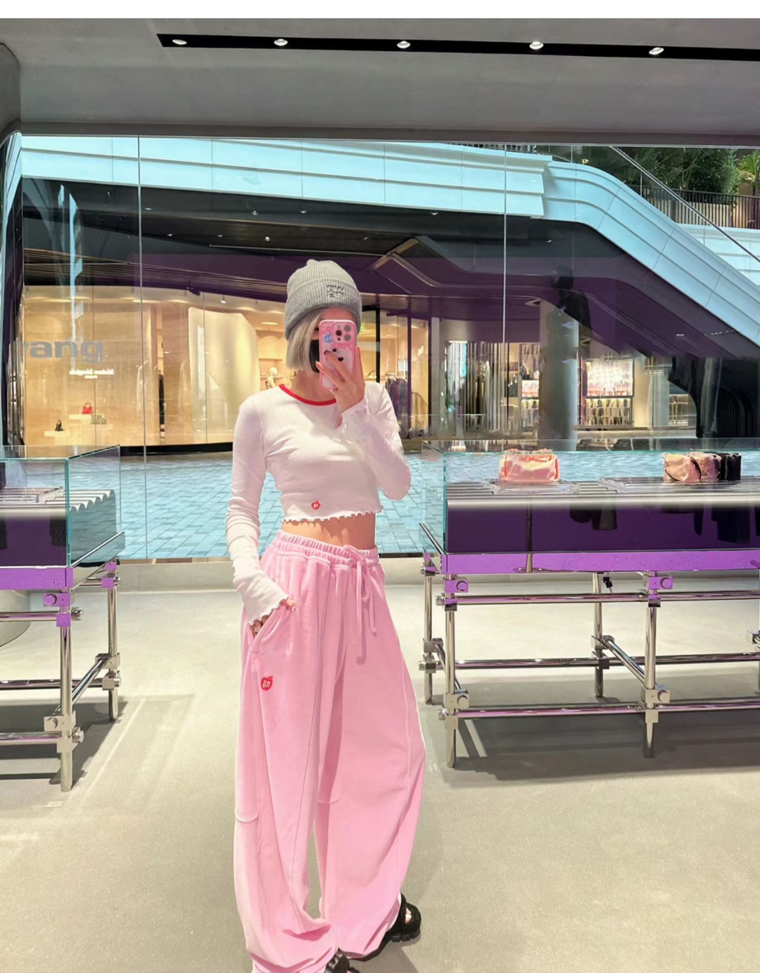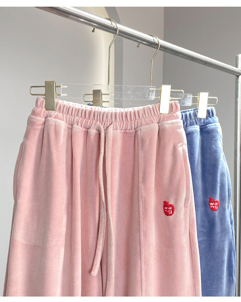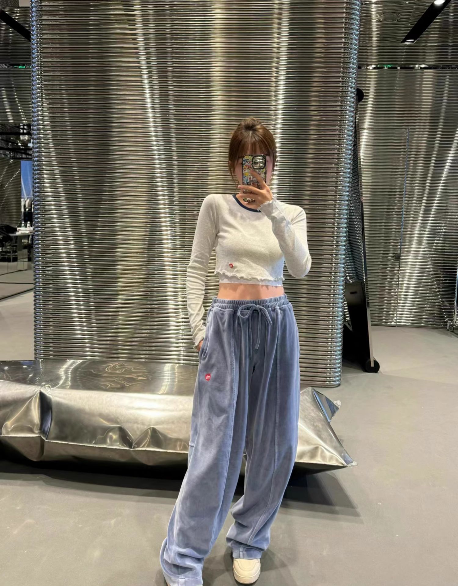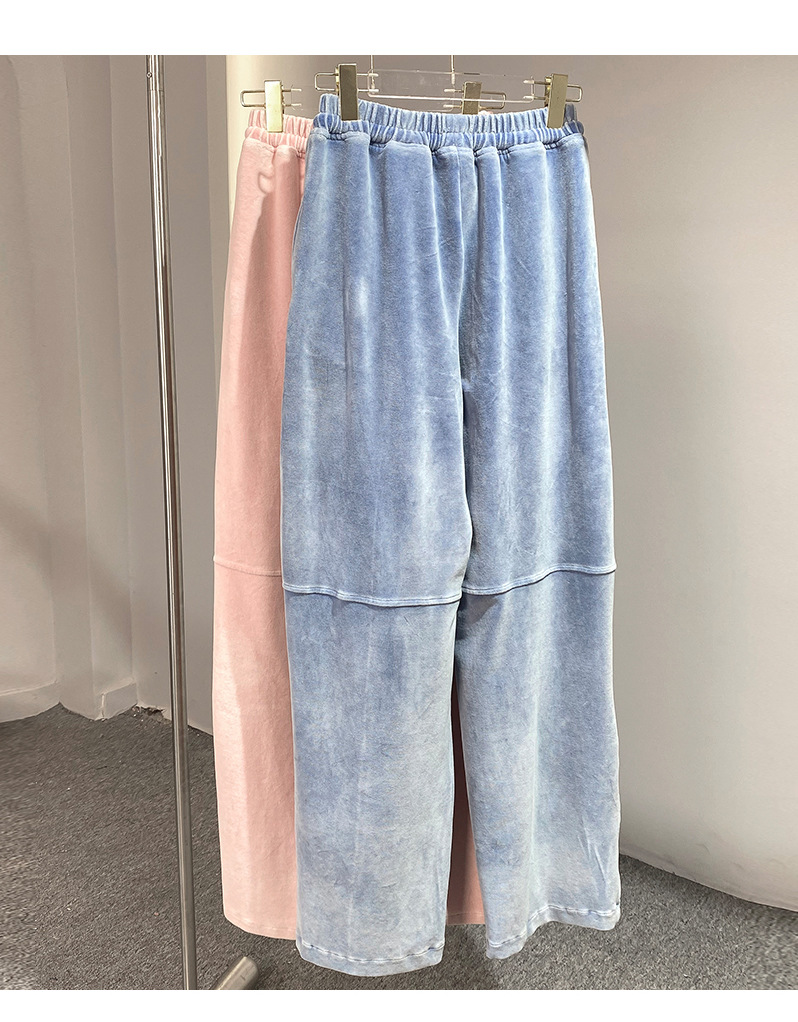 패션 탄성 허리 느슨한 캐주얼 바지 여성 틈새 2023 가을과 겨울 새로운 높은 허리 스포츠 넓은 다리 바지 바지 트렌드스토어 가기