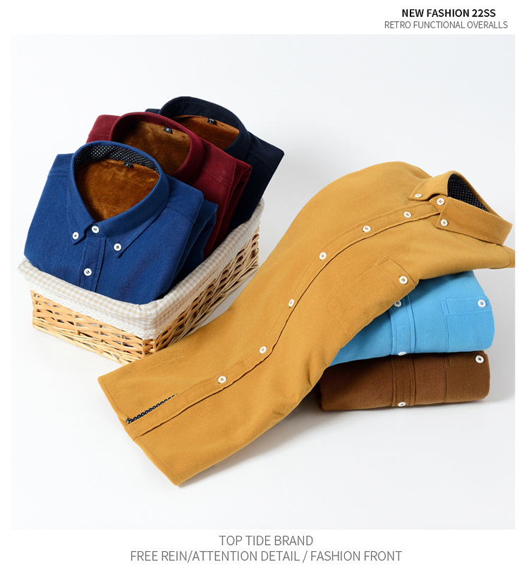 남성 캐주얼 패션 코듀로이 플리스 셔츠 플리스 안감 두꺼운 셔츠 228-20
