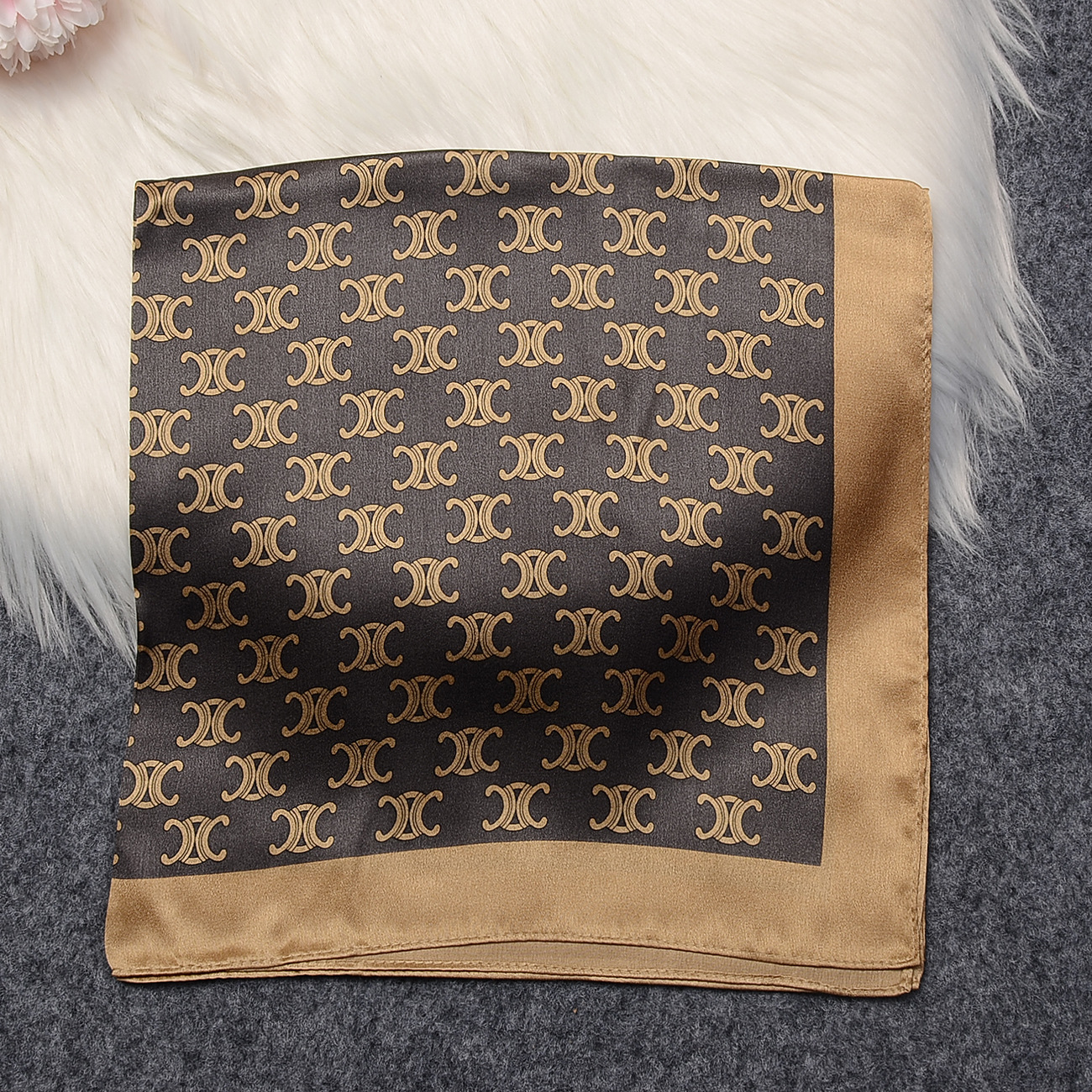 다크 브라운 한국 패션 실크 스카프 여성의 가을과 겨울 개선문 장식 실크 53cm 작은 사각형 스카프 공장 직접 판매