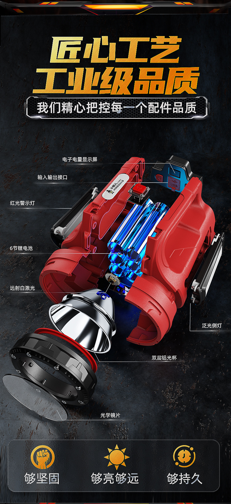 새로운 레이저 장거리 조명 램프 긴 내구성 야외 강한 빛 화재 비상 조명 다기능 홍수 제어 서치 라이트
