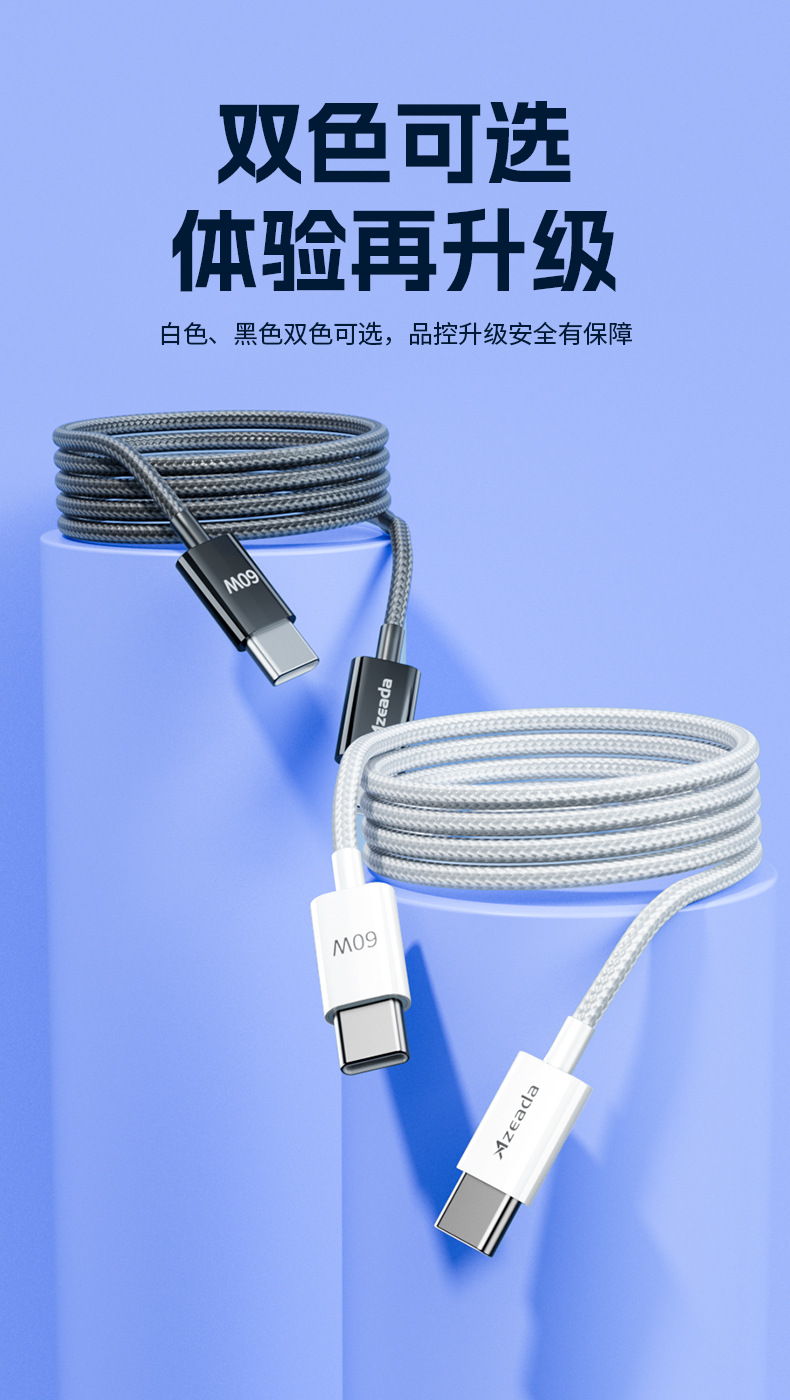 Azeada PD60W 휴대 전화 빠른 충전 케이블 애플 15 화웨이 타입-C 고속 충전 케이블에 적합