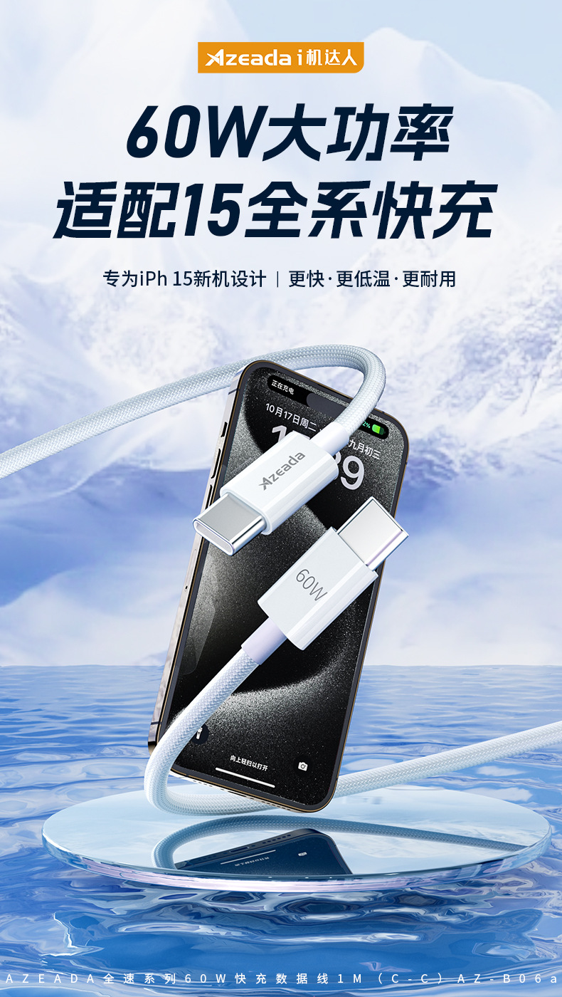 Azeada PD60W 휴대 전화 빠른 충전 케이블 애플 15 화웨이 타입-C 고속 충전 케이블에 적합스토어 가기