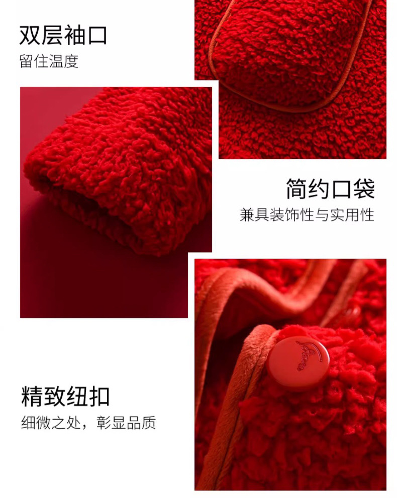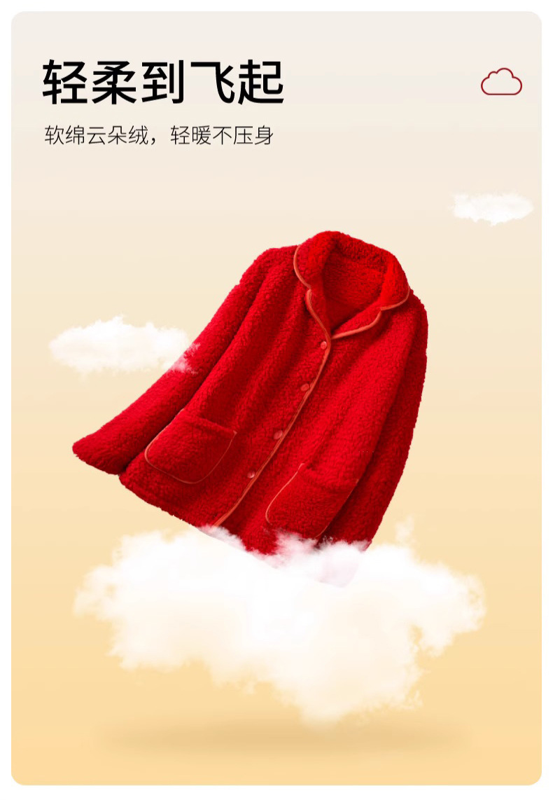남녀공용 레드 컬러의 겨울용 양면 구름털 푹신하고 두꺼운 신상 따뜻한 홈웨어 세트스토어 가기