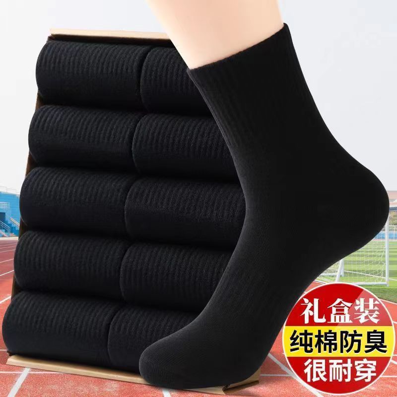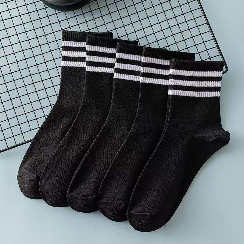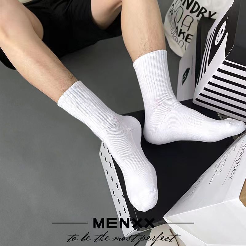 가을 솔리드 컬러 다용도 흑백 남녀 스포츠 하이삭스, 심플한 면 소재의 부드러운 남성용 양말, 주지 양말 도매스토어 가기