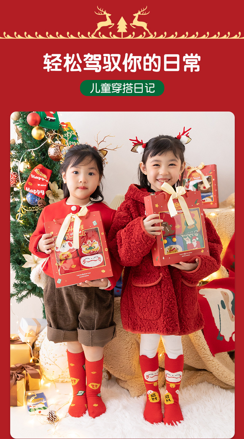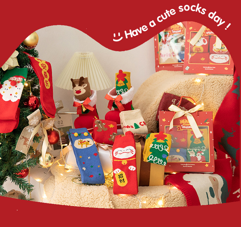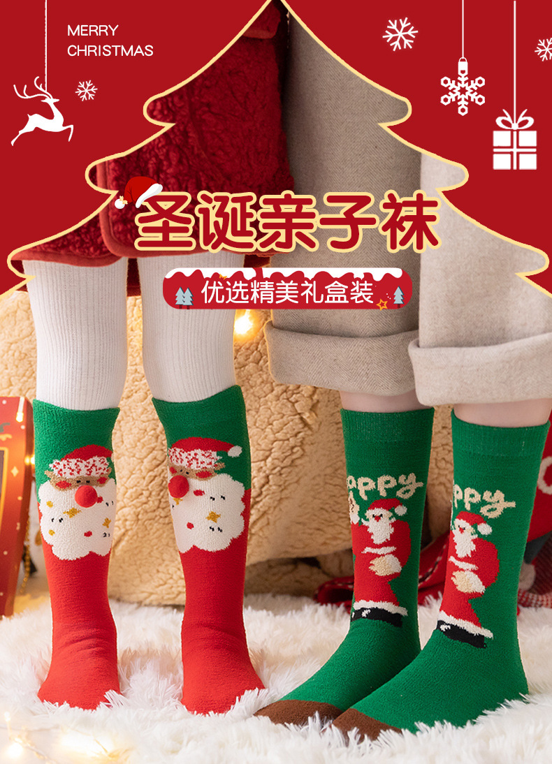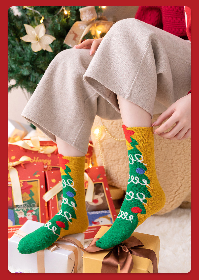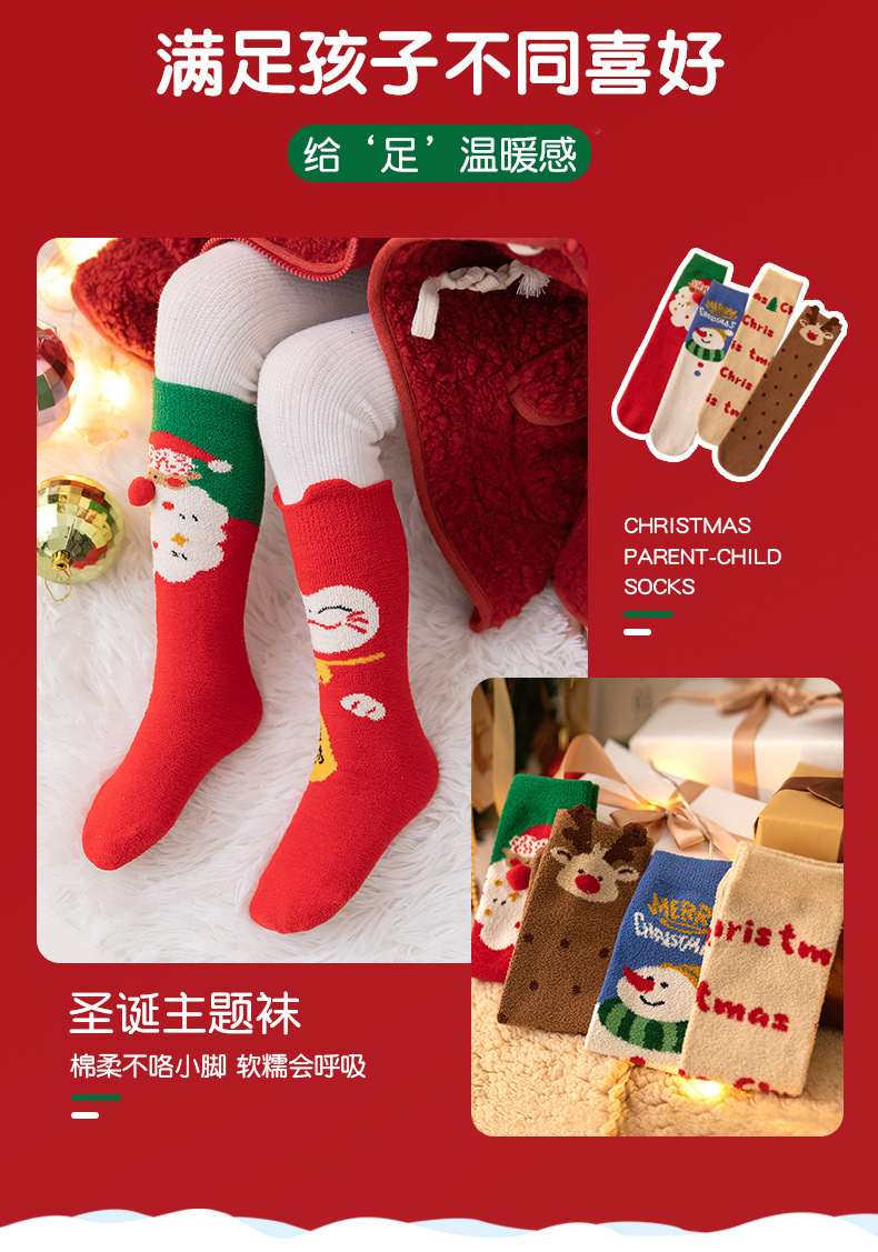 선물 상자 겨울 소녀 스타킹 소년 중반 송아지 양말 산호 양털 부모-자식 크리스마스 새해 양말 어린이 양말스토어 가기