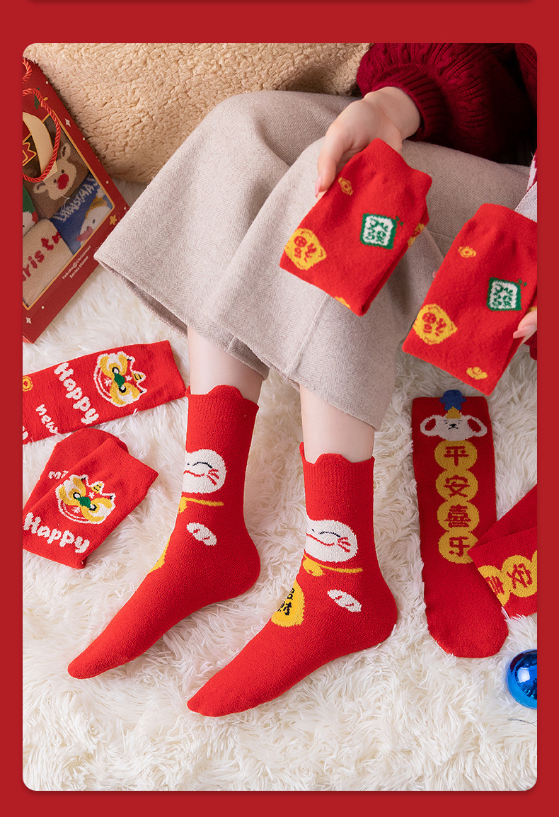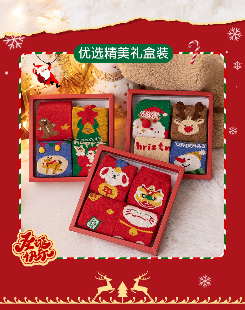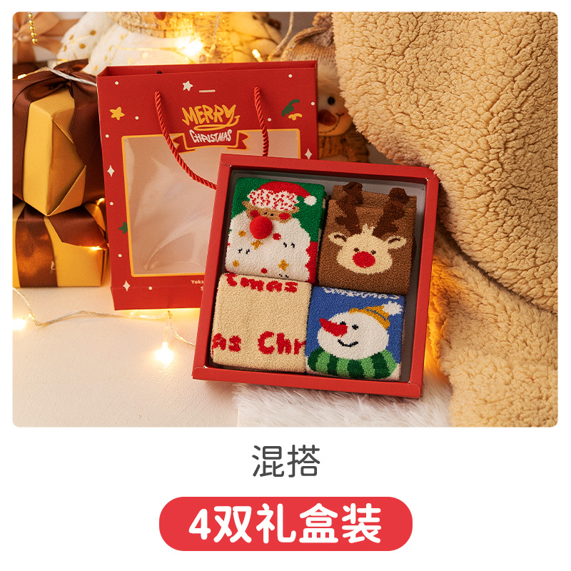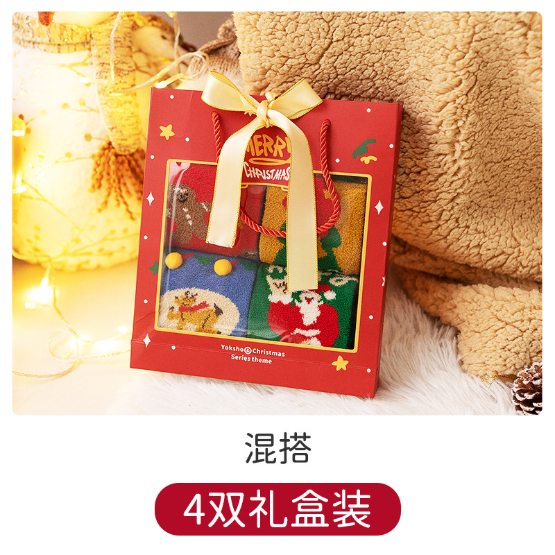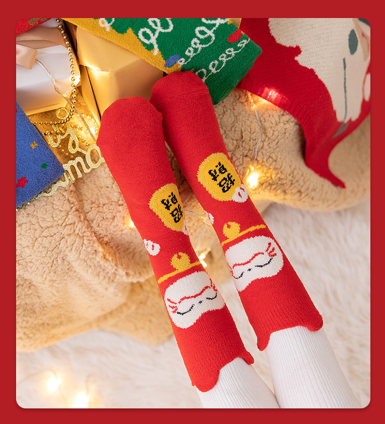 선물 상자 겨울 소녀 스타킹 소년 중반 송아지 양말 산호 양털 부모-자식 크리스마스 새해 양말 어린이 양말