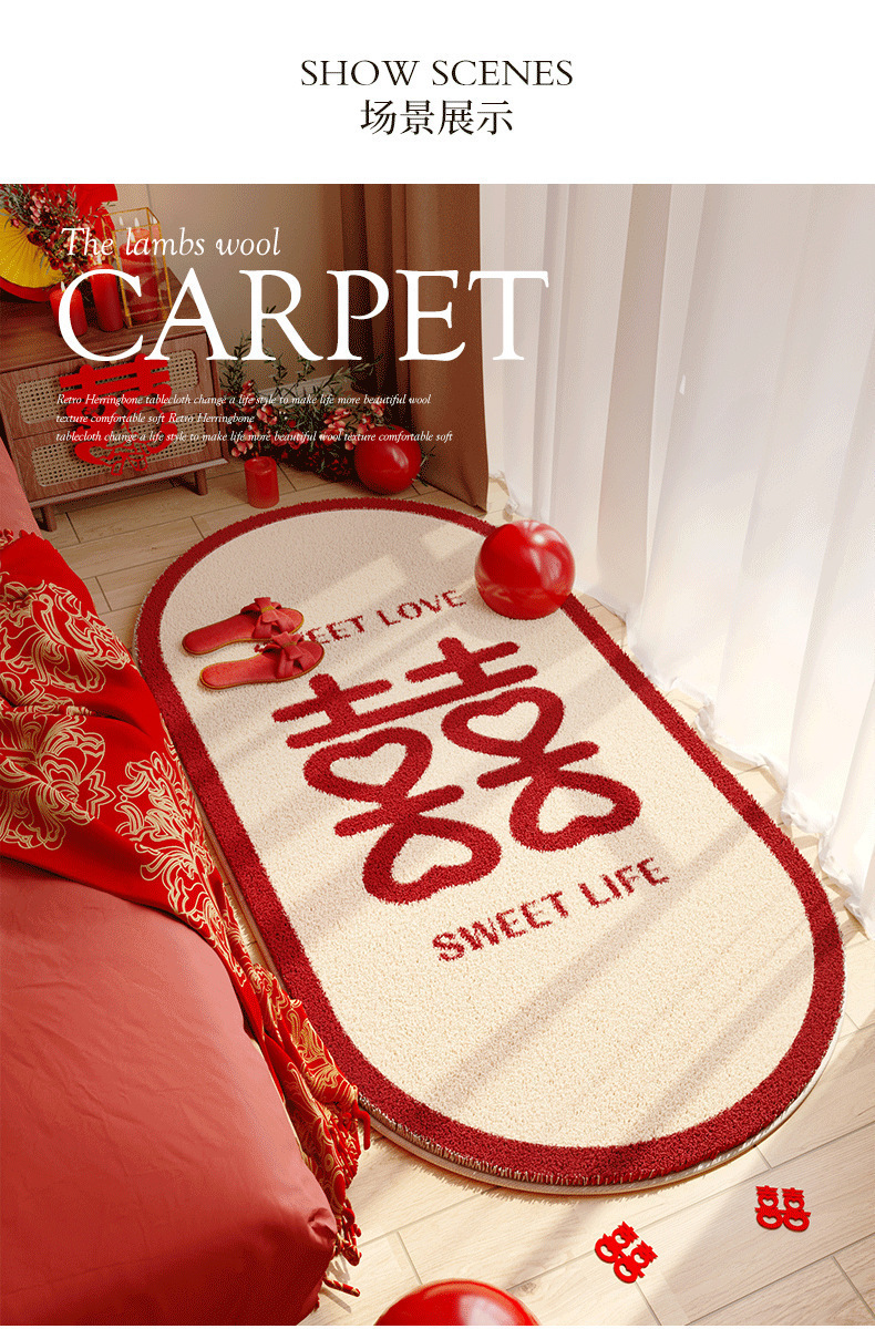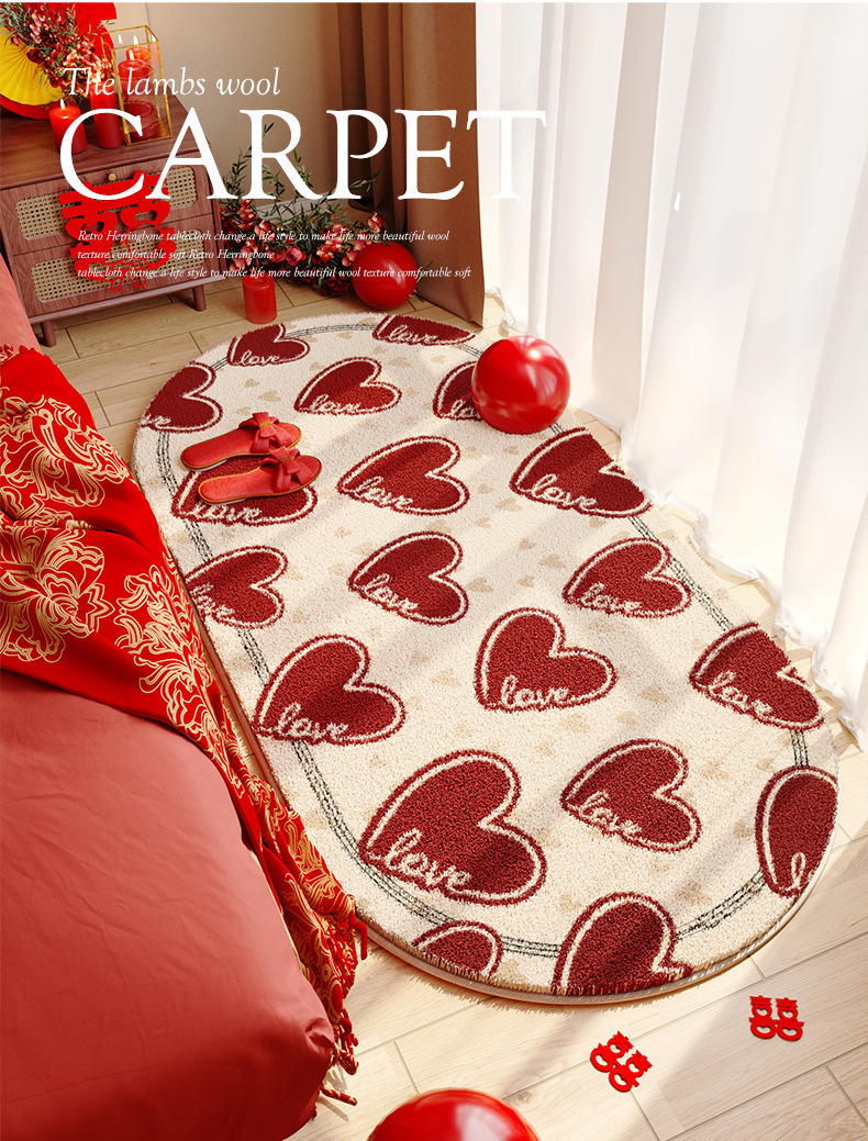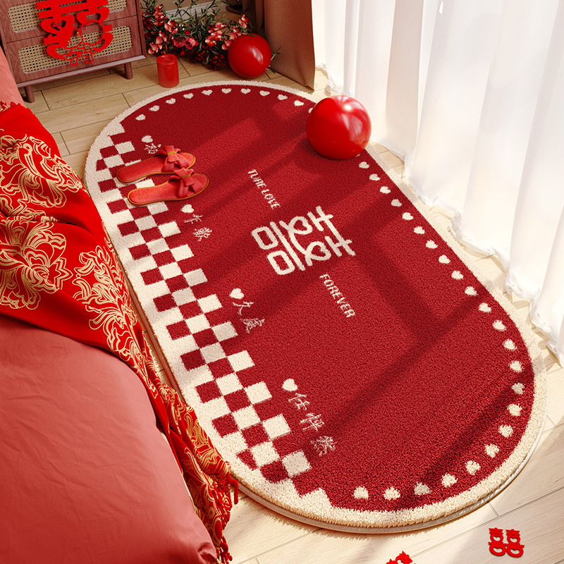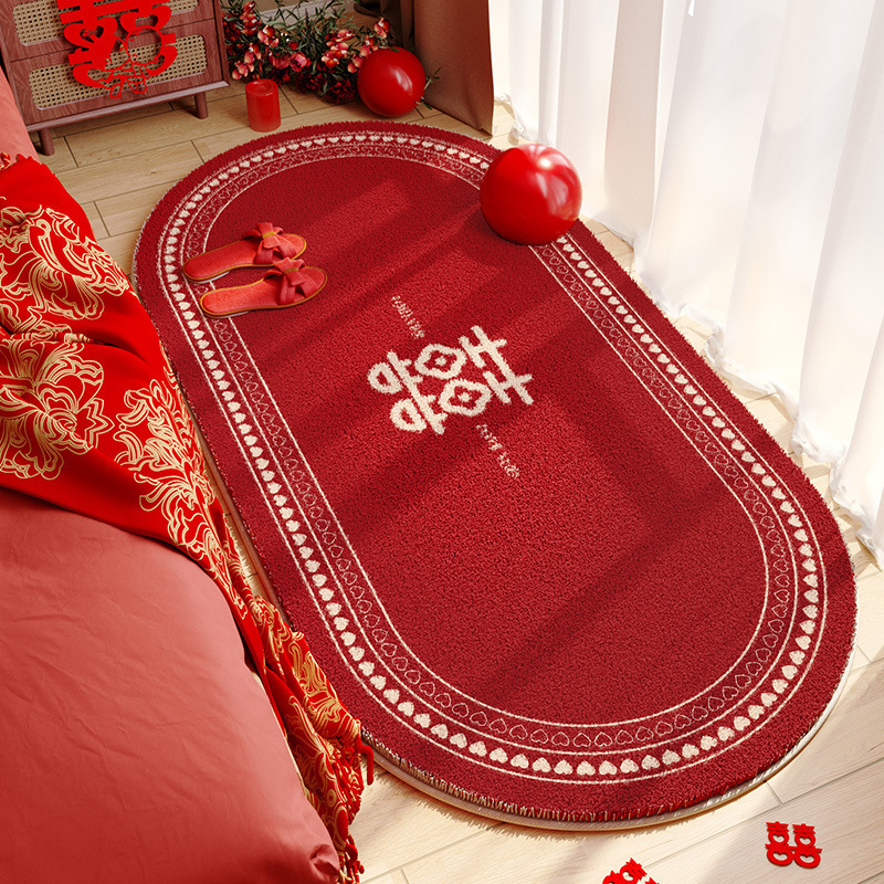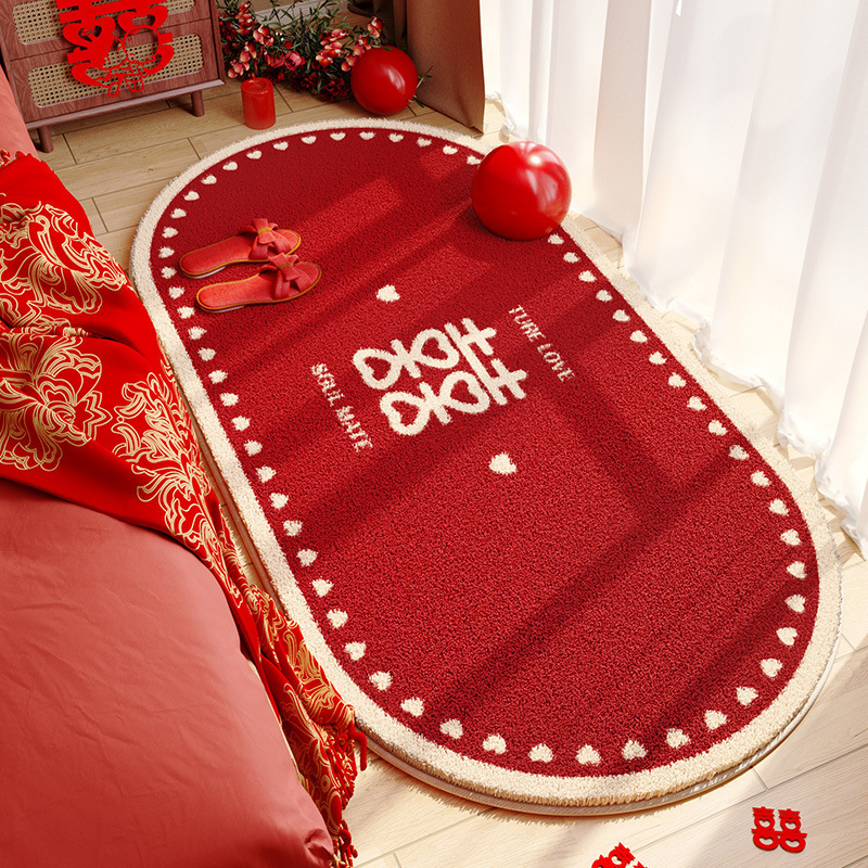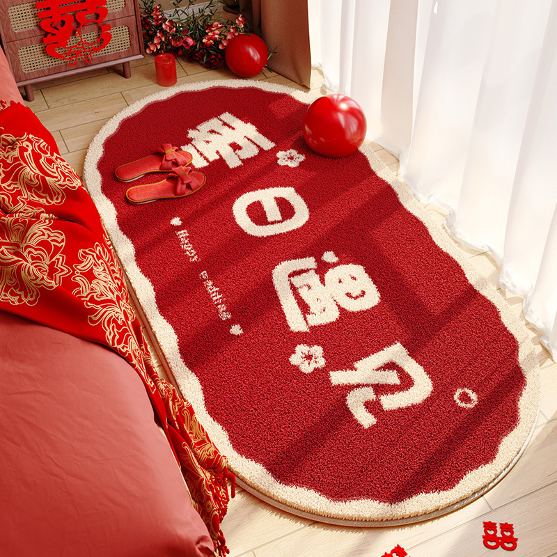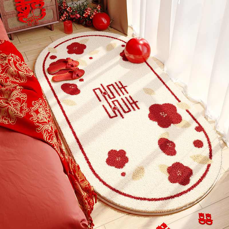 레드 축제 캐시미어 같은 카펫 웨딩 룸 장식 침실 침대 옆 냉각 카펫 홈 거실 미끄럼 방지 담요스토어 가기