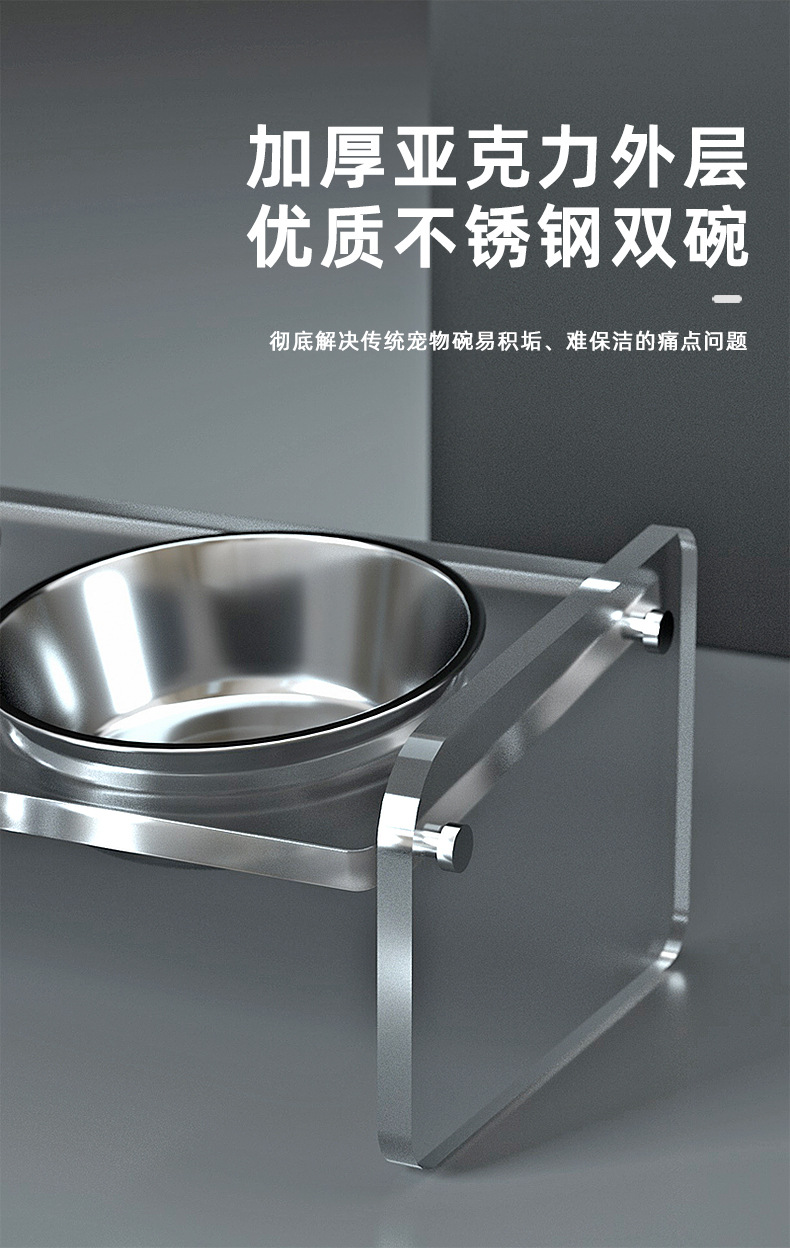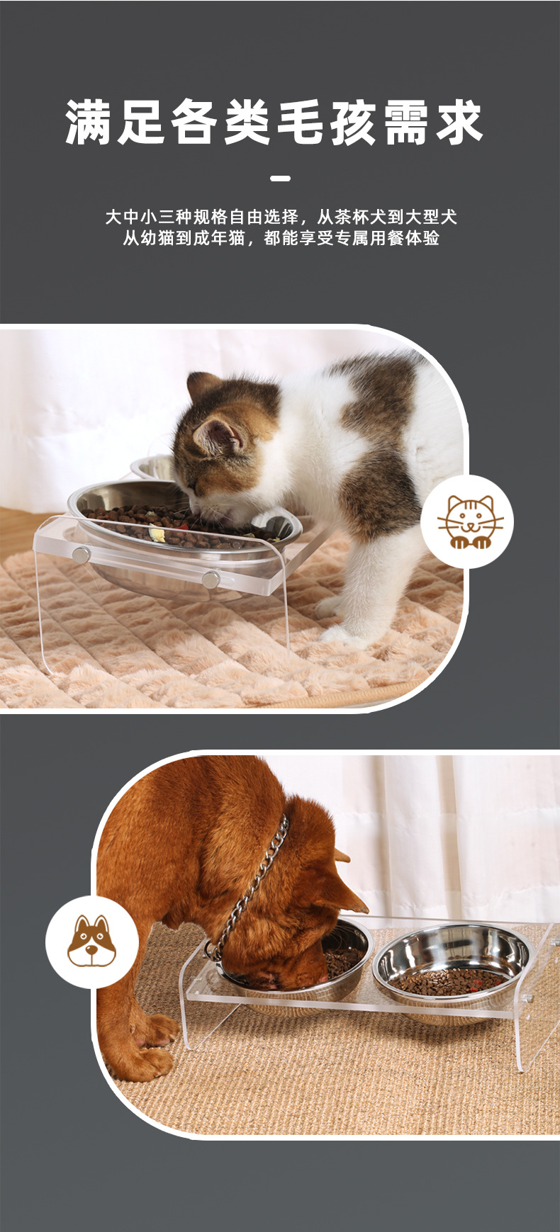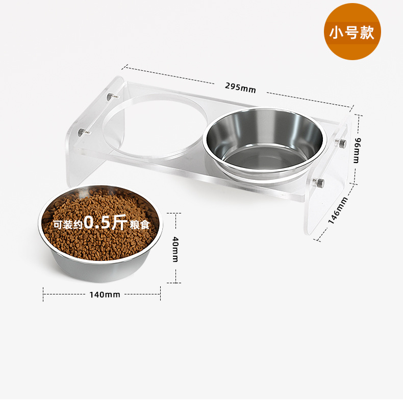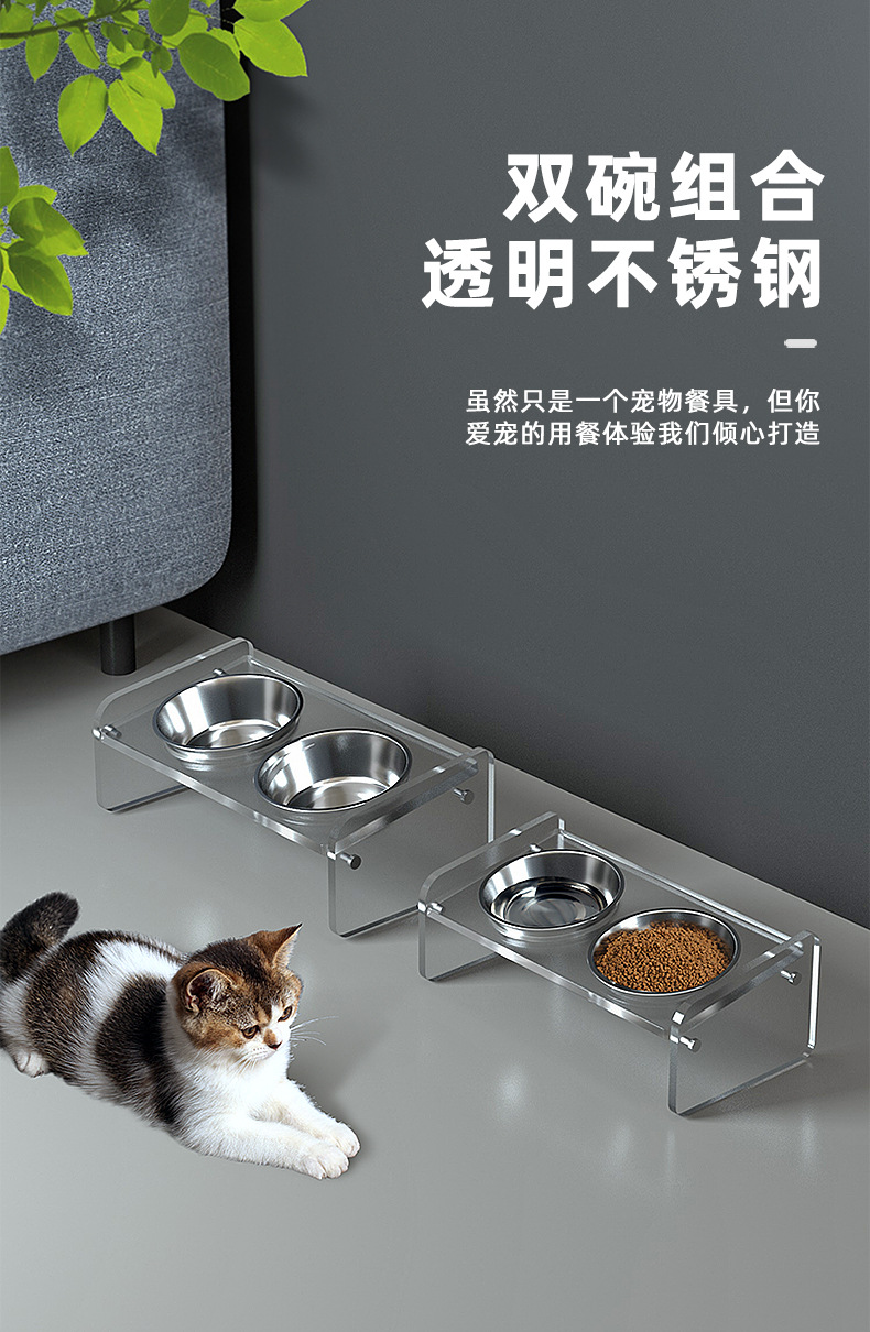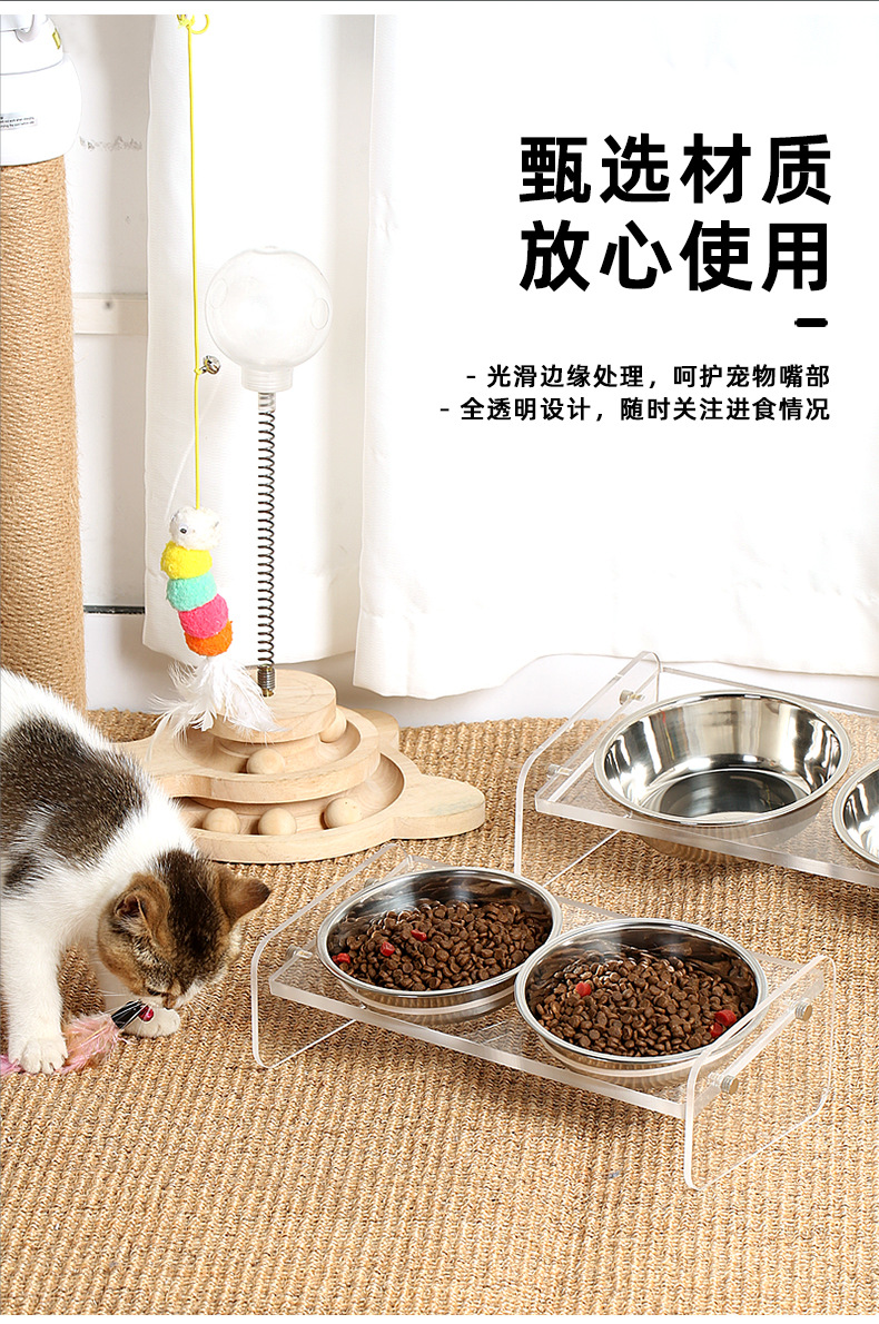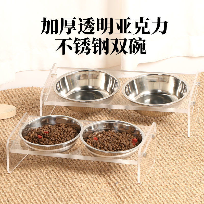 투명 아크릴 스테인레스 스틸 애완 동물 더블 볼 개 그릇 스테인레스 스틸 통합 고양이 그릇 고양이 음식 분지 안티 노크