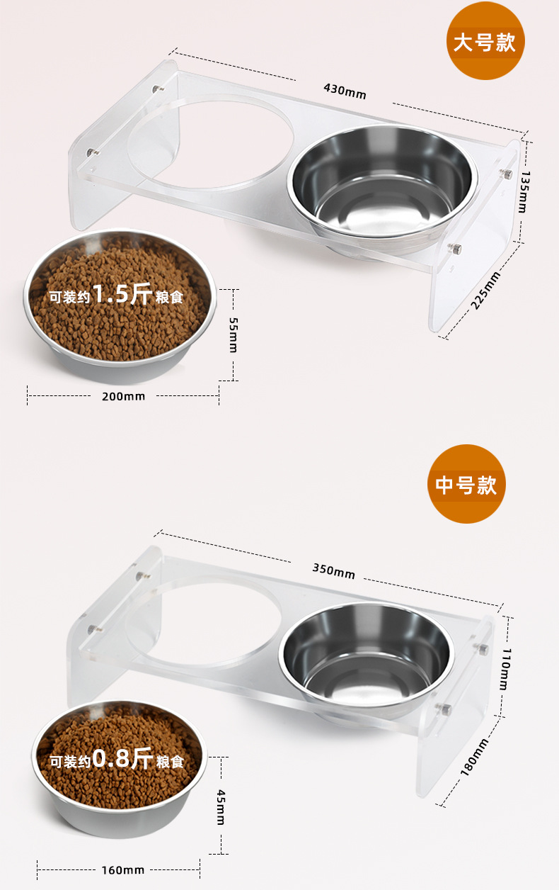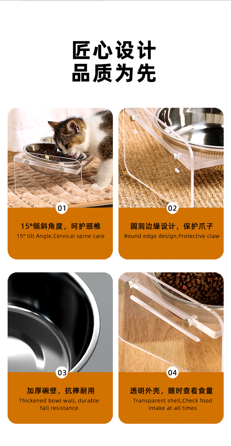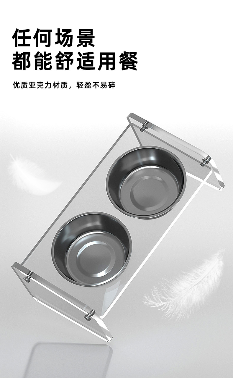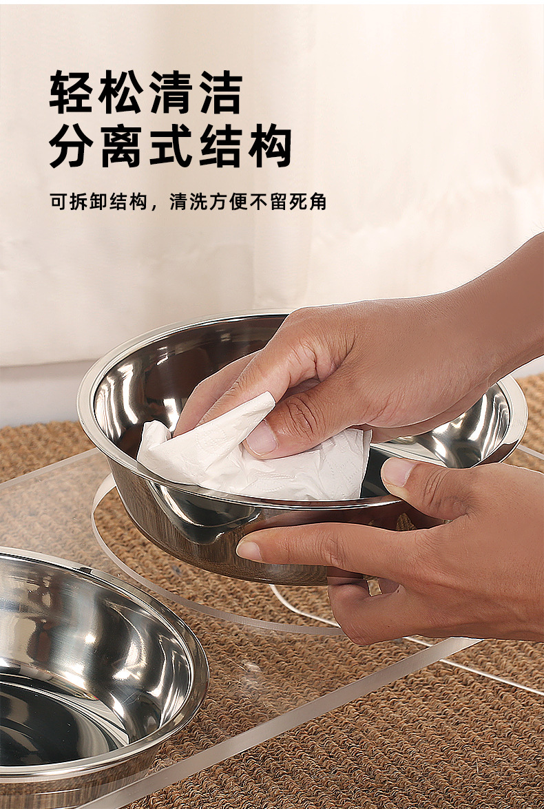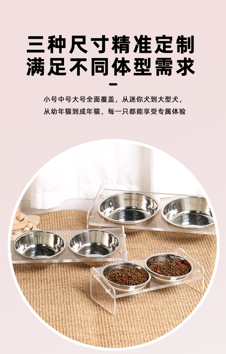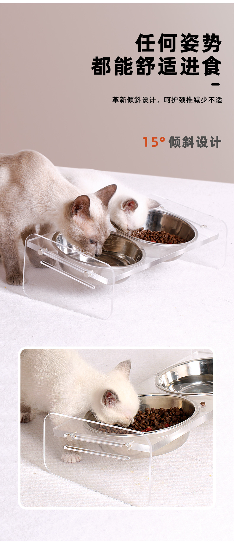 투명 아크릴 스테인레스 스틸 애완 동물 더블 볼 개 그릇 스테인레스 스틸 통합 고양이 그릇 고양이 음식 분지 안티 노크