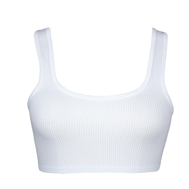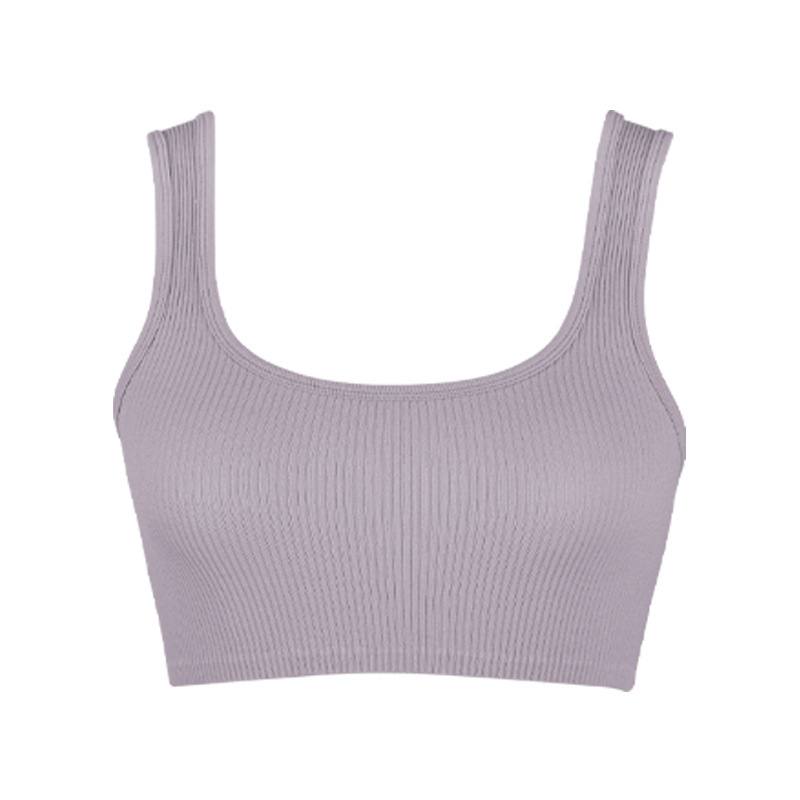 원활한 니트 리브 스포츠 조끼 수직 스트라이프 U 리드 스텝 피트니스 요가 슬링 작은 조끼 탱크 탑