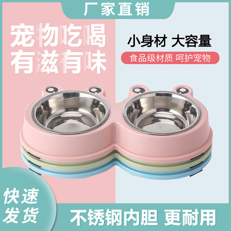 공장 도매 개 그릇 더블 그릇 플라스틱 미끄럼 방지 개 그릇 만화 개구리 모양 피더 마시는 애완 동물 그릇