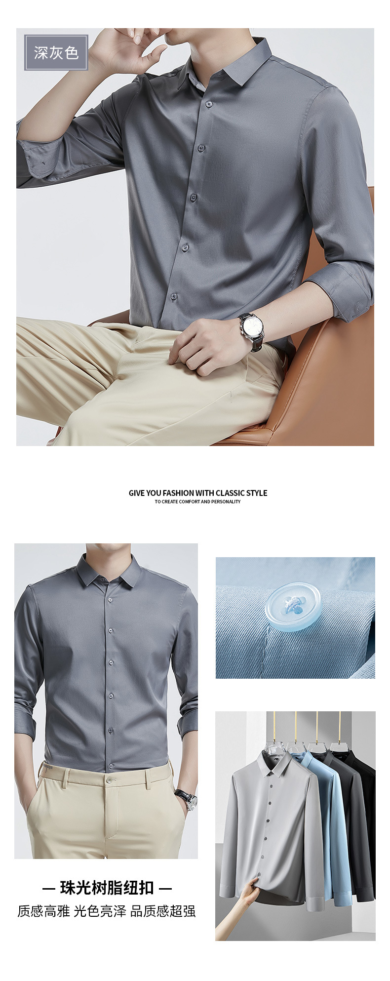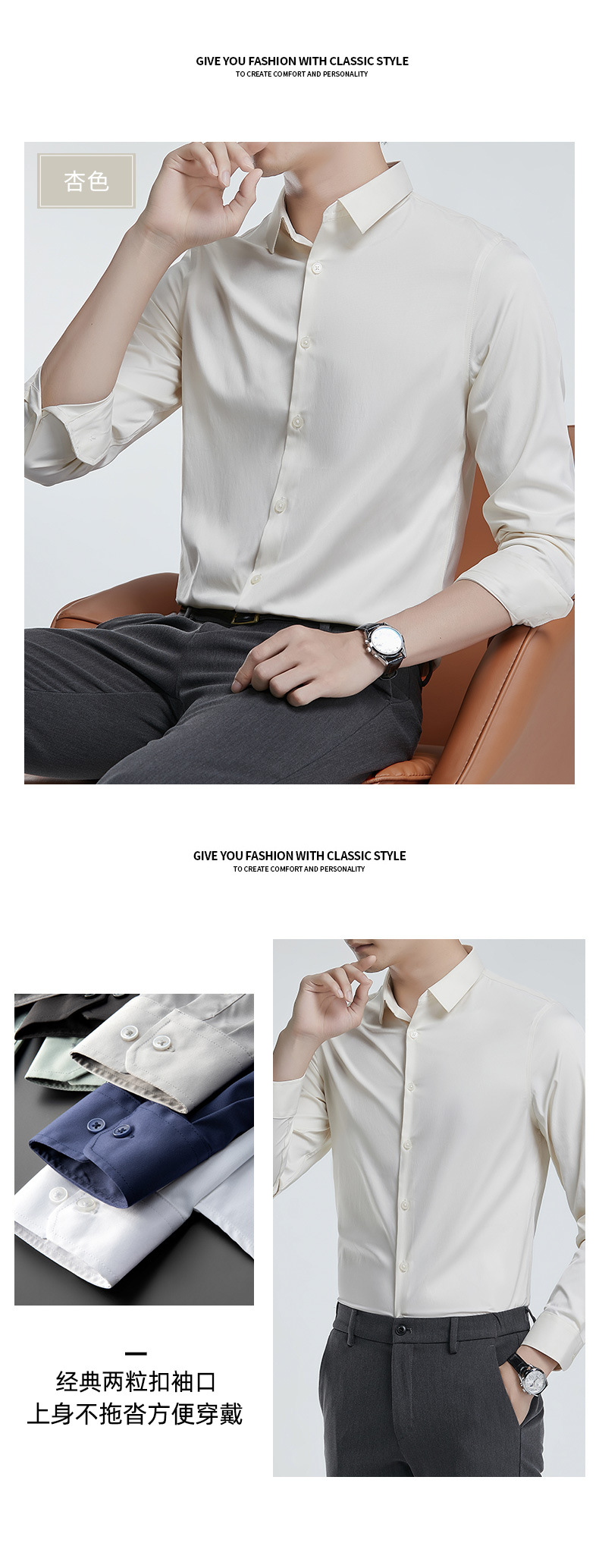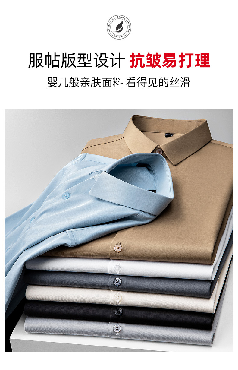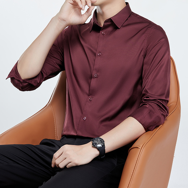 더블 실크광택 무다림 셔츠 남성용 긴팔 구김 방지 비즈니스 정장 봄 가을 고급 정장 웨딩 셔츠 단색