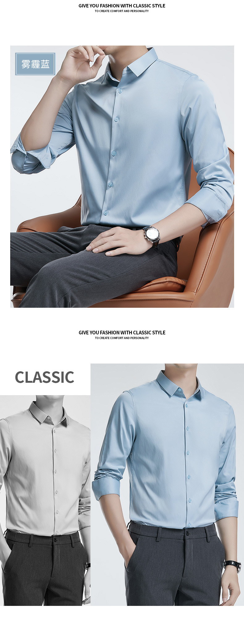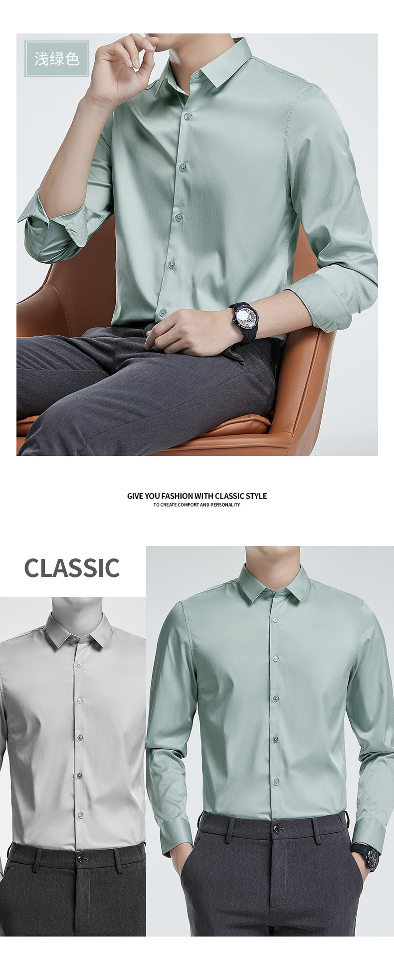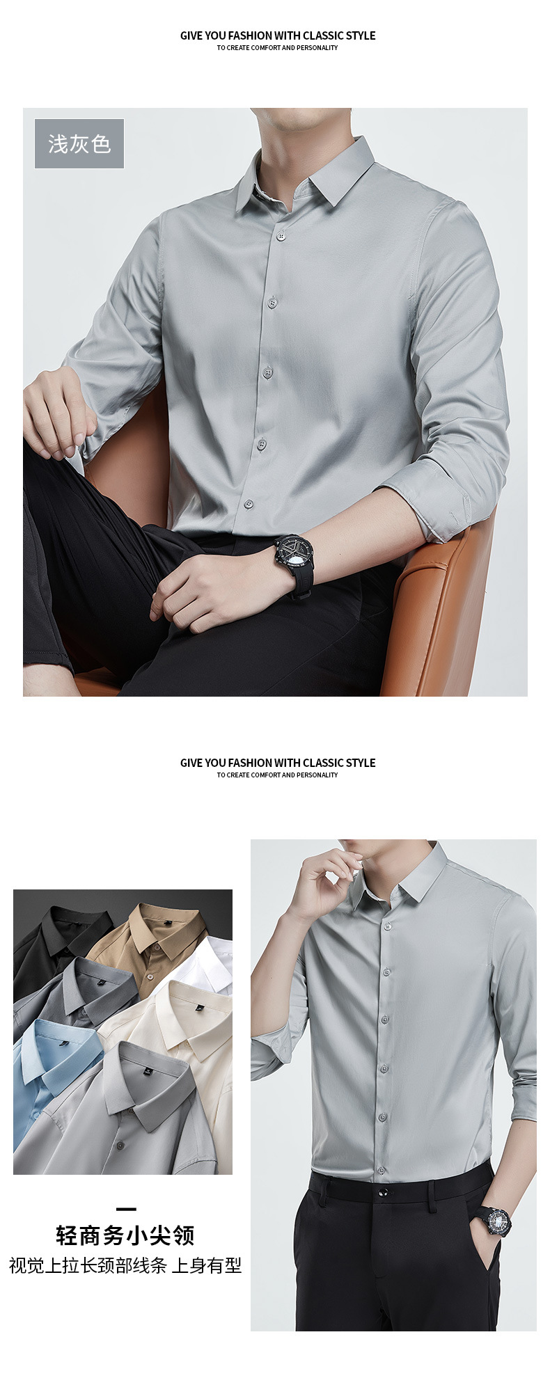 더블 실크광택 무다림 셔츠 남성용 긴팔 구김 방지 비즈니스 정장 봄 가을 고급 정장 웨딩 셔츠 단색