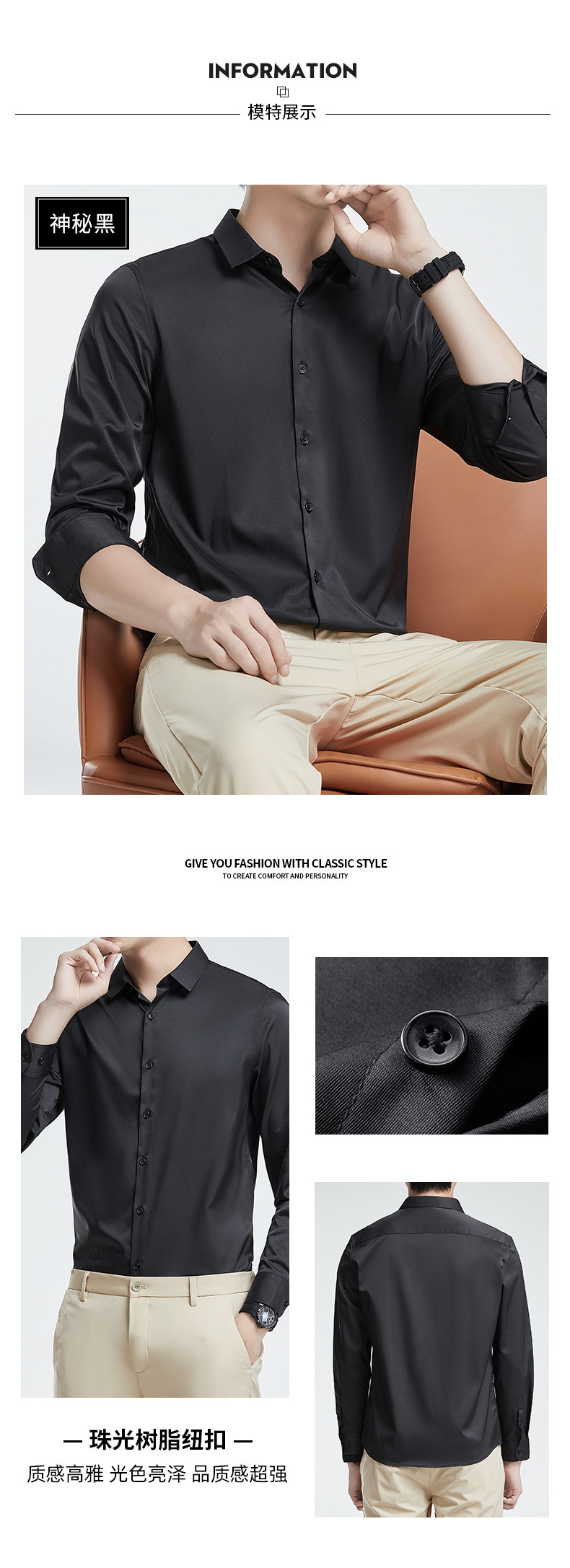 더블 실크광택 무다림 셔츠 남성용 긴팔 구김 방지 비즈니스 정장 봄 가을 고급 정장 웨딩 셔츠 단색스토어 가기
