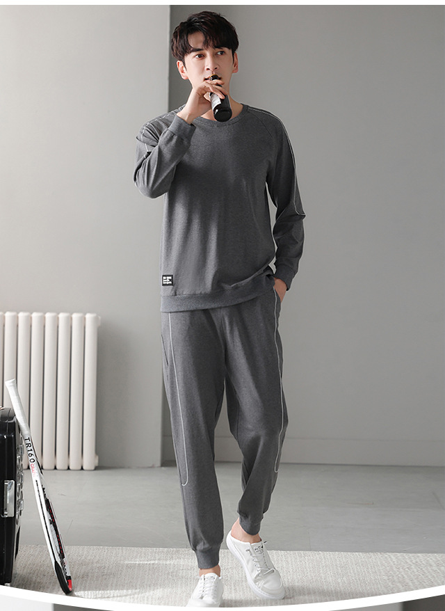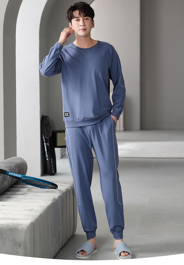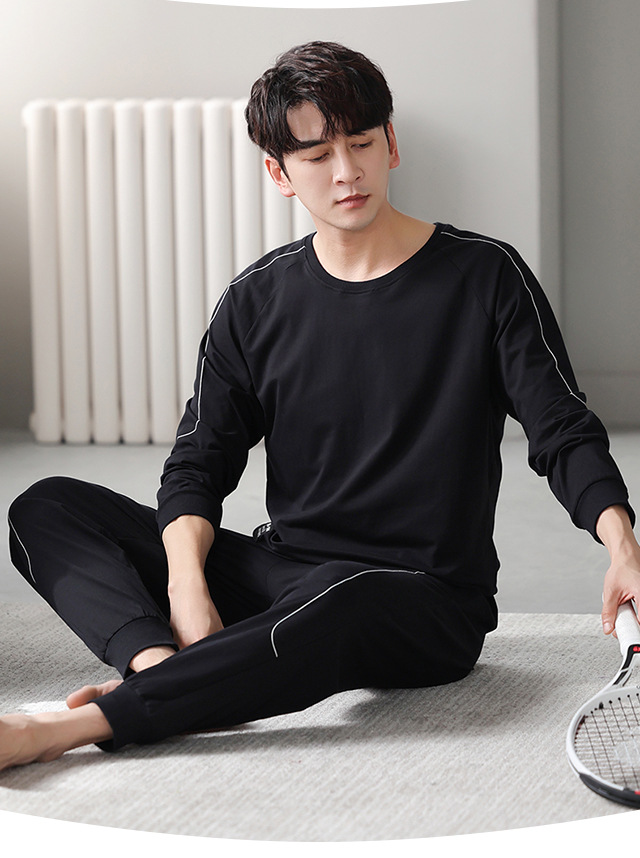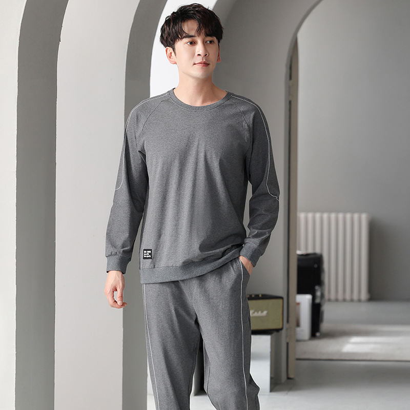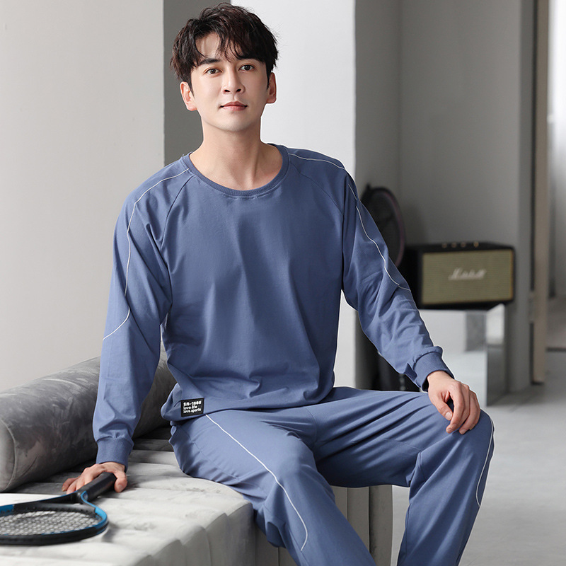 [주문자상표부착생산] 순면 남성용 잠옷 가을/겨울 긴팔 풀오버 캐주얼 남성 홈웨어 도매