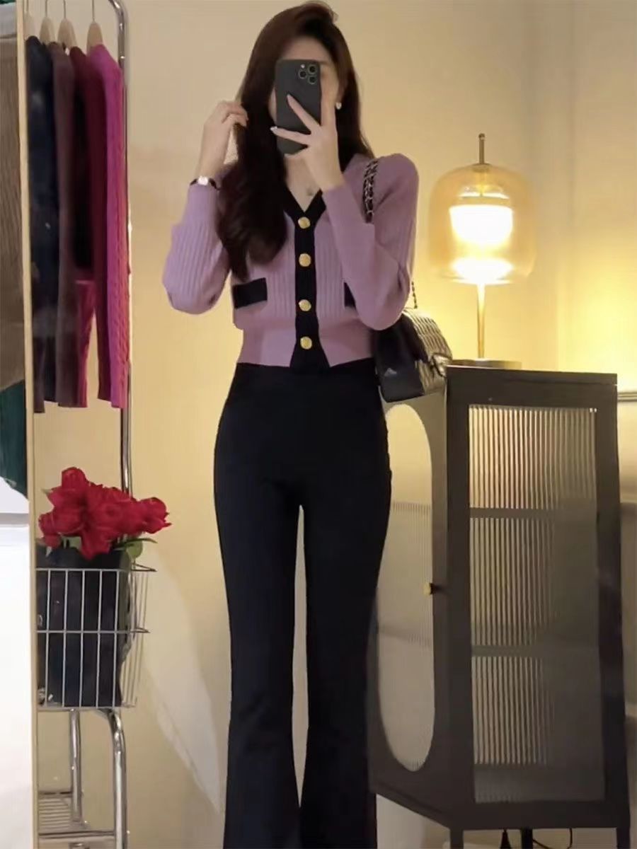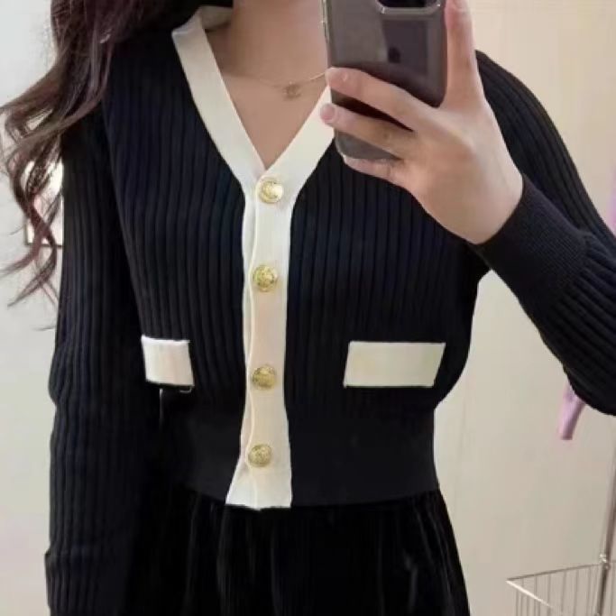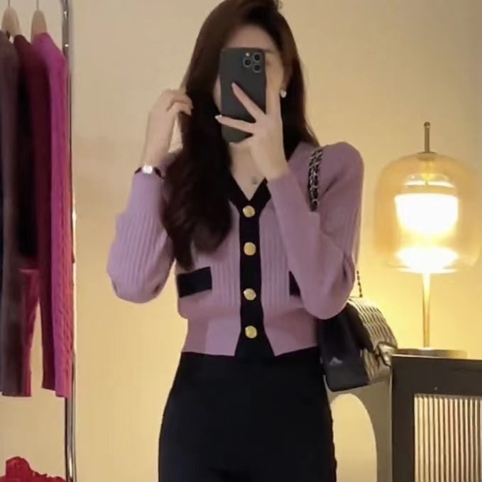 싱글 브레스트 긴팔 니트 카디건 스웨터 코트 여성의 봄 트렌디 한 탑과 일치하는 프랑스 부드러운 향기로운 칼라 색상스토어 가기