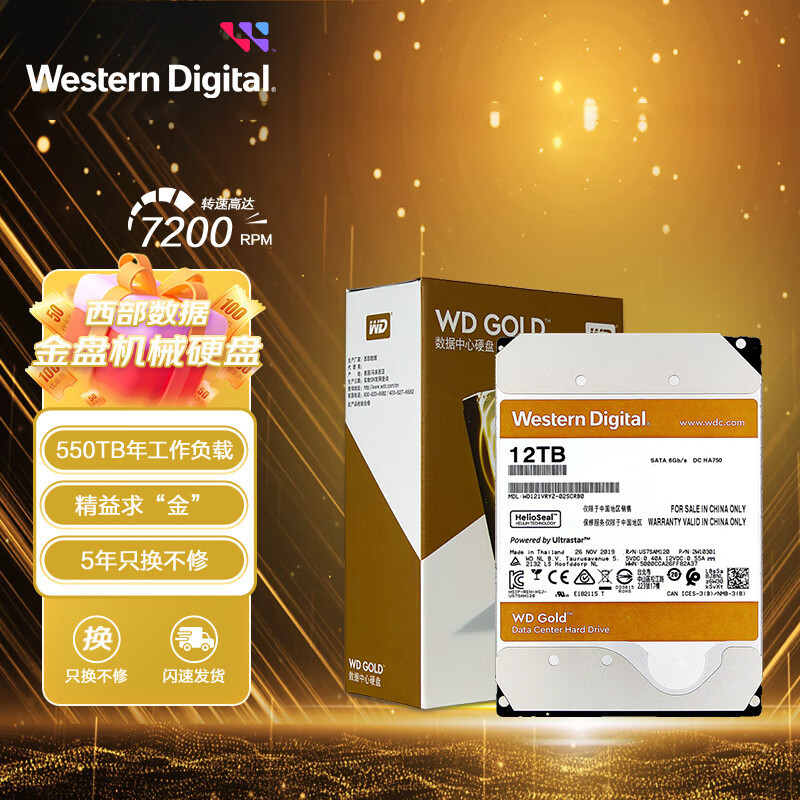 • 12TB-골드 플레이트| 엔터프라이즈급 스토리지 디스크